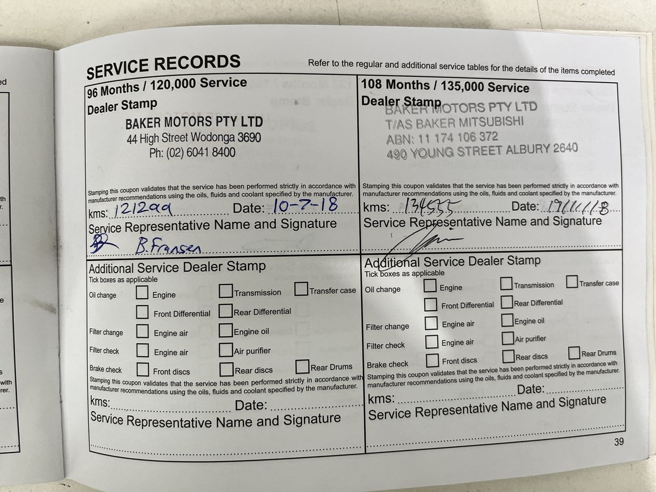 • Dents or marks on body consistent with age and kilometres.