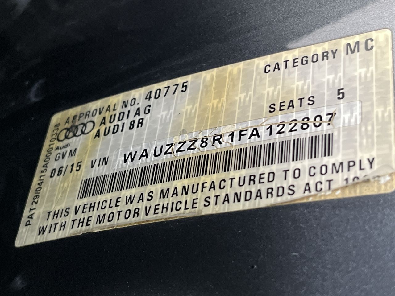 (SN:WAUZZZ8R1FA122807) (124715-3)