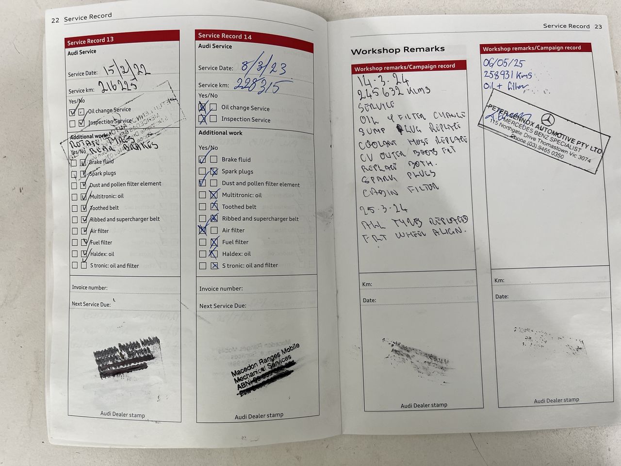 • Dents or marks on body consistent with age and kilometres.