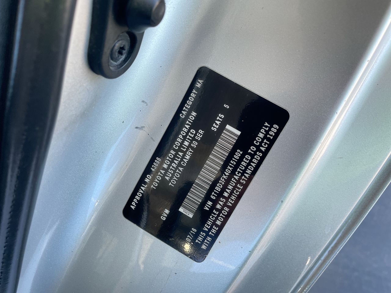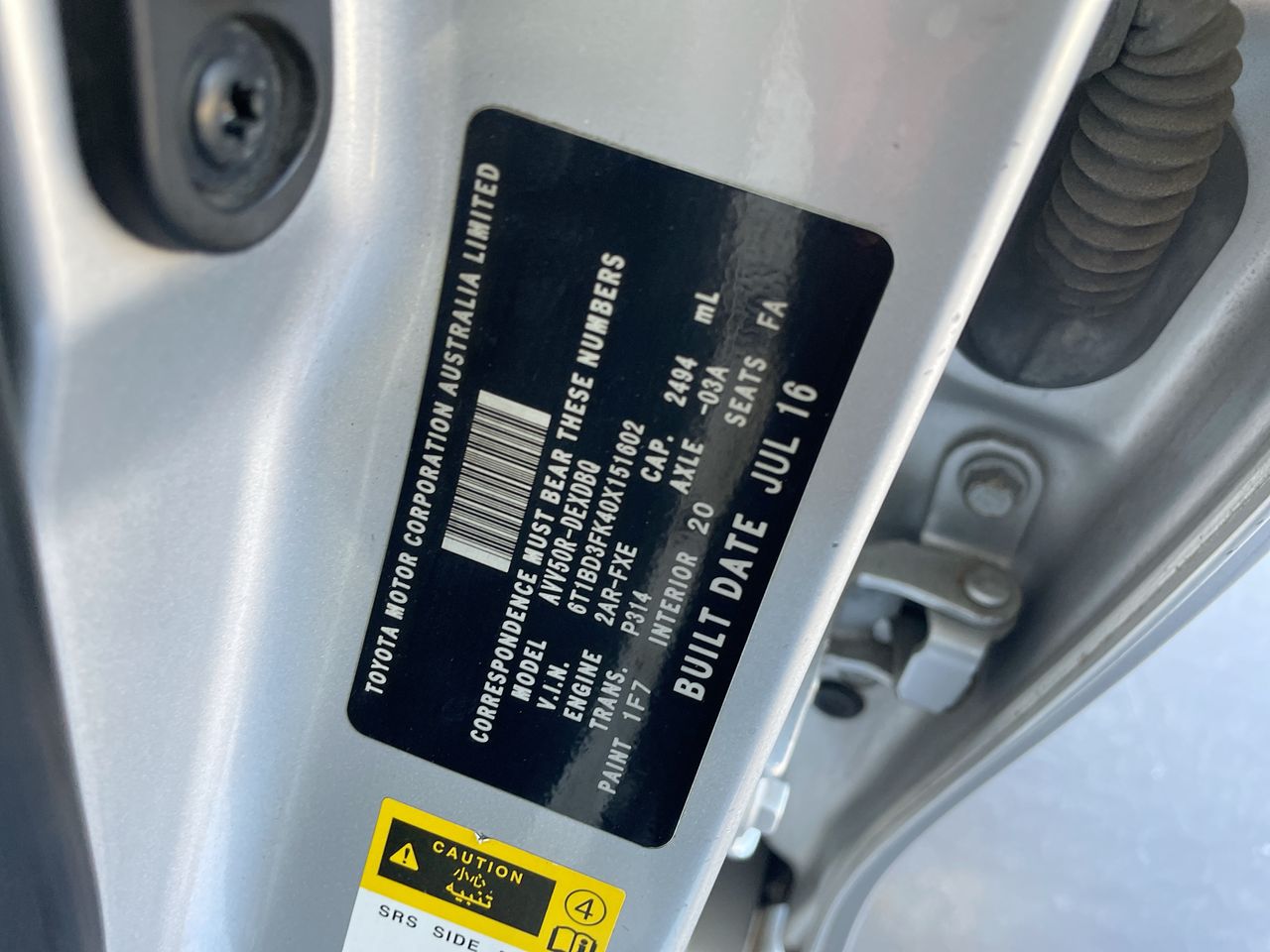 2016 Toyota Camry ALTISE HYBRID AVV50R CVT Sedan