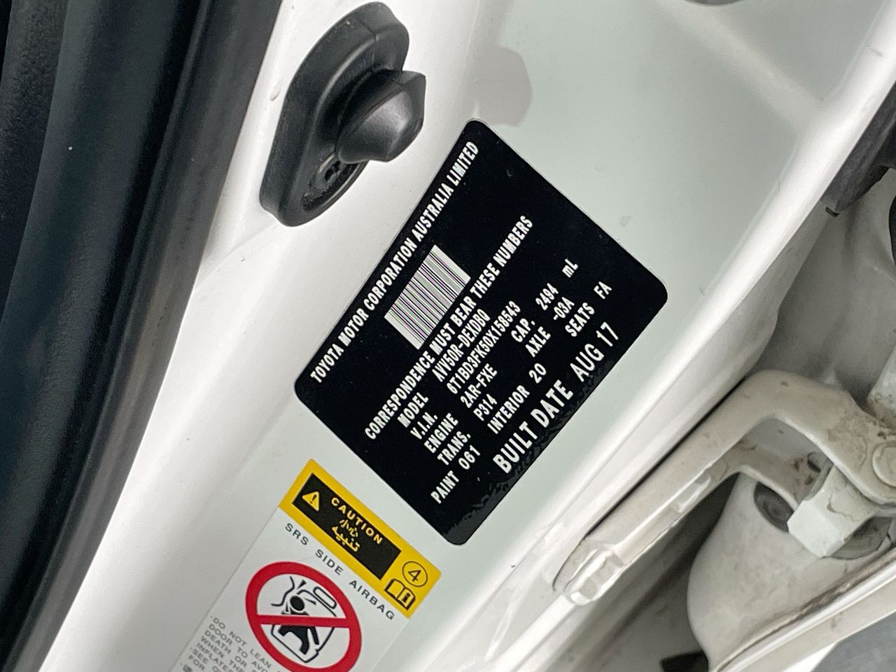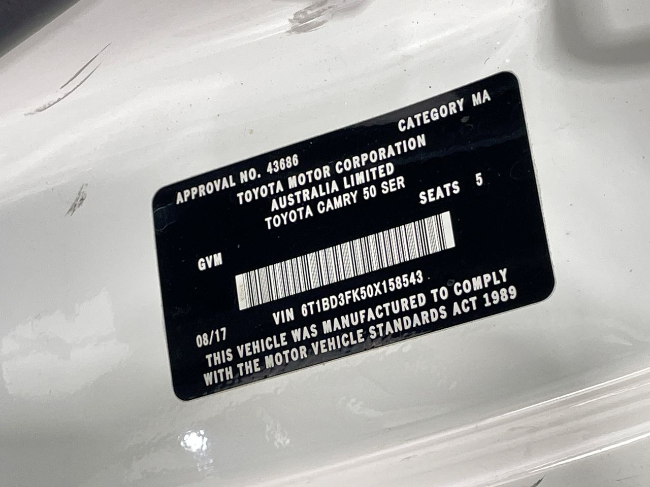 • VIN: 6T1BD3FK50X158543