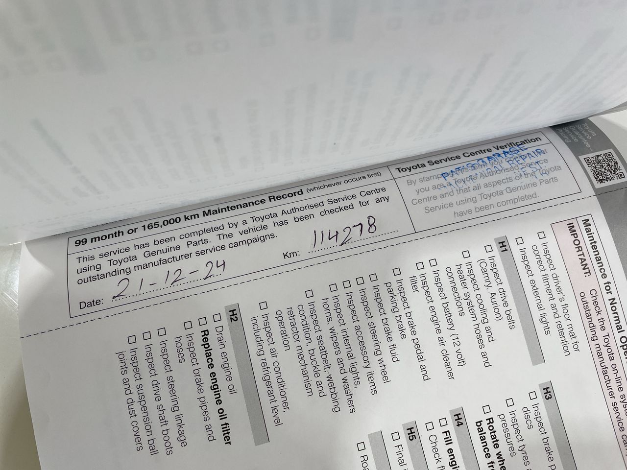 • Dents or marks on body consistent with age and kilometres.