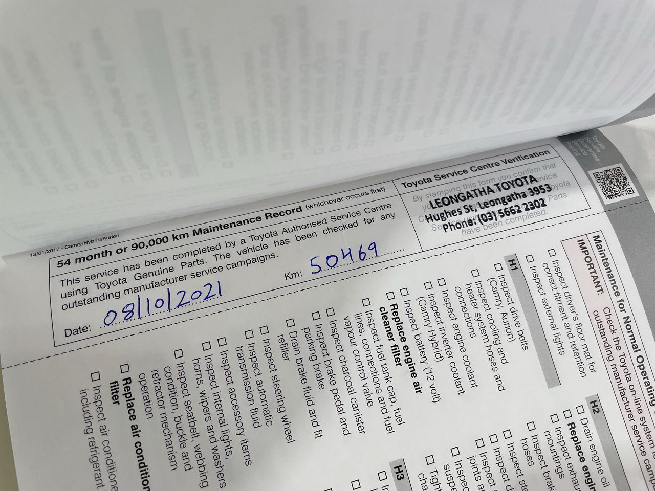 2017 Toyota Camry ALTISE HYBRID AVV50R CVT Sedan
