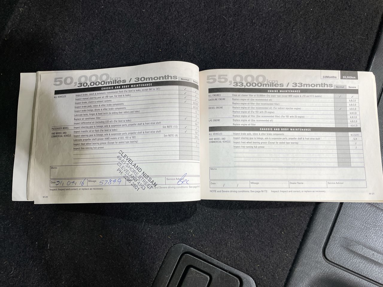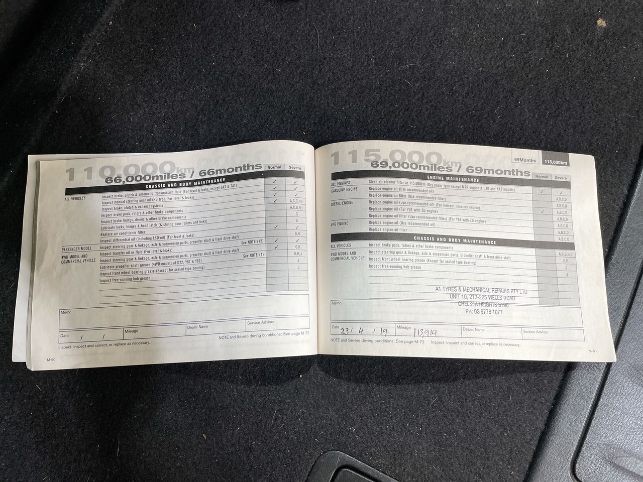 • Dents or marks on body consistent with age and kilometres.