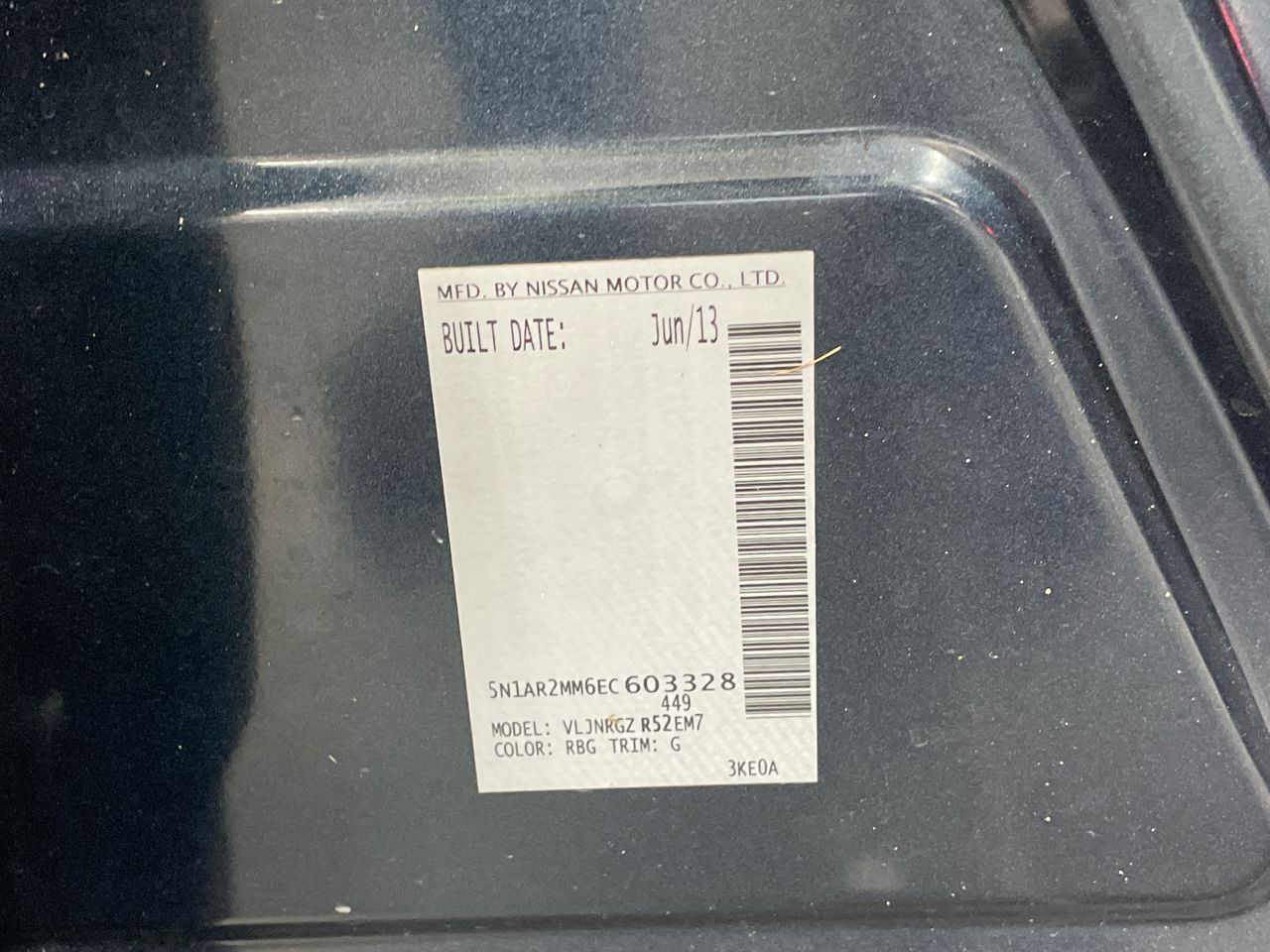 • VIN: 5N1AR2MM6EC603328