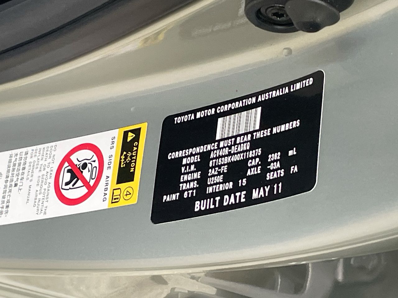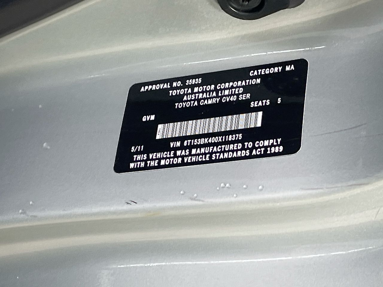 • VIN: 6T153BK400X118375