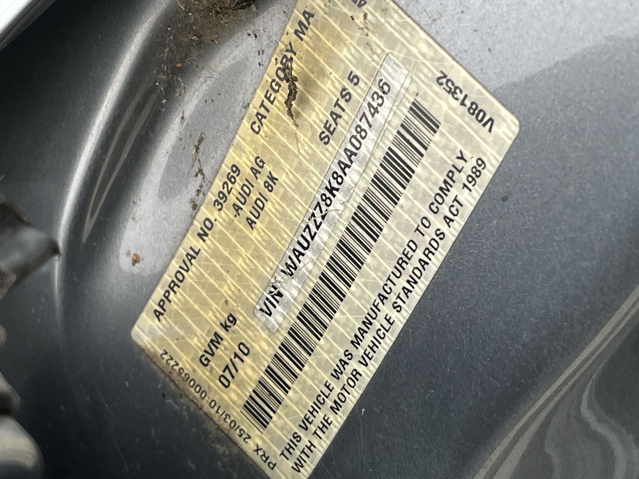 (SN:WAUZZZ8K8AA087436) (139939-1)