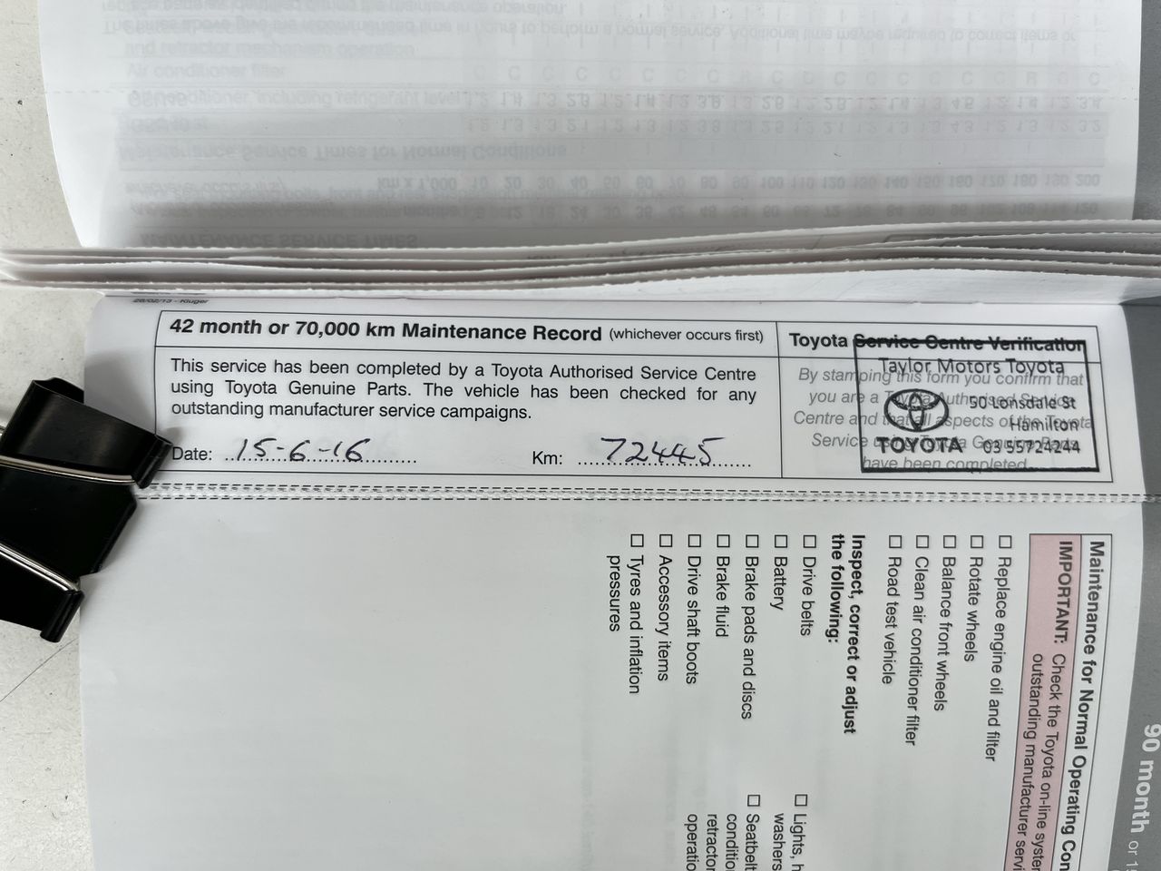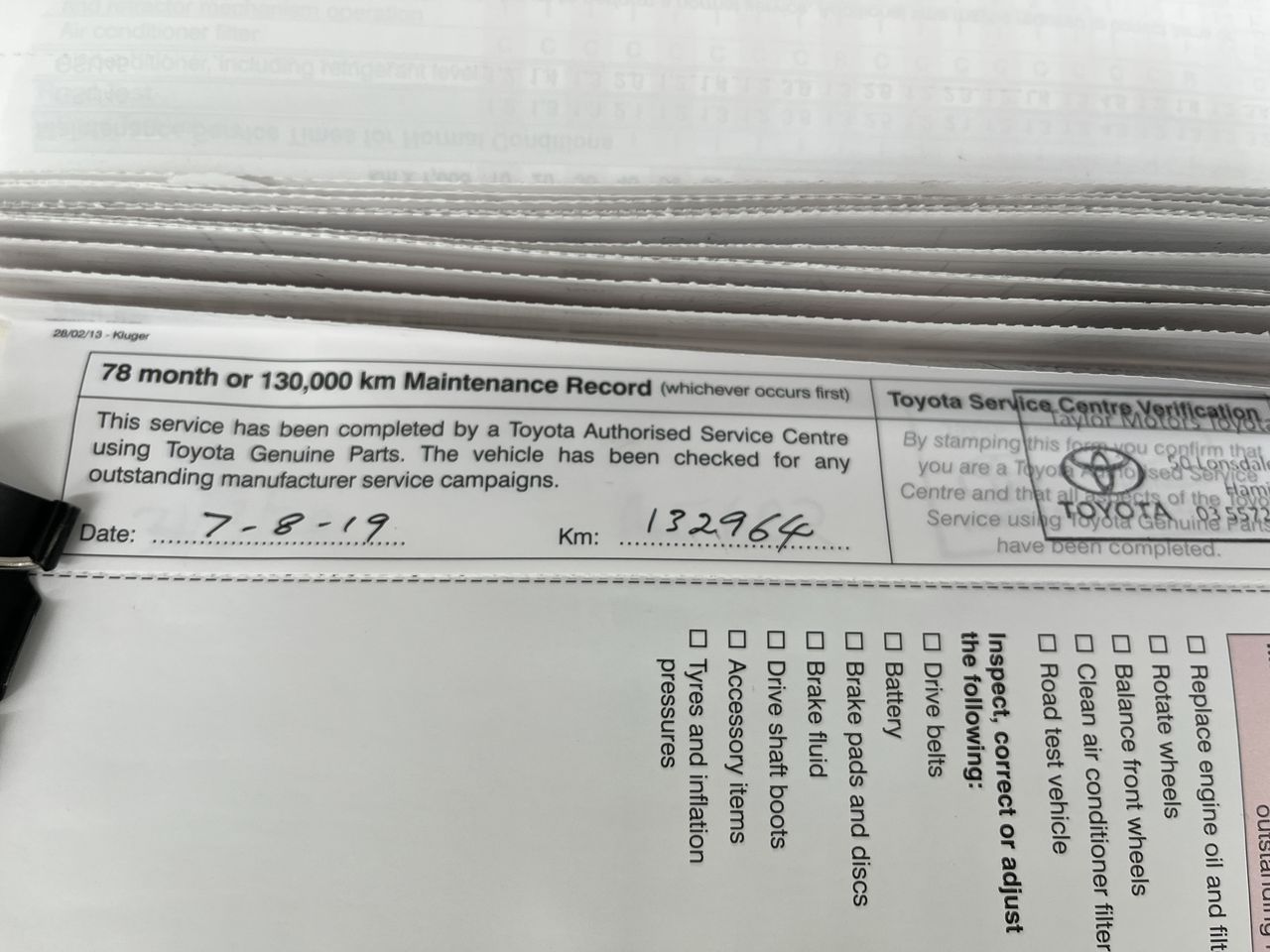 • Dents or marks on body consistent with age and kilometres.