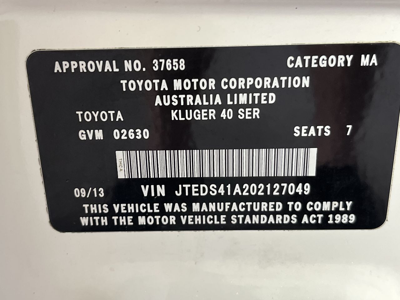 2013 Toyota Kluger 4X2 KX-R GSU40R Automatic 7 Seats Wagon