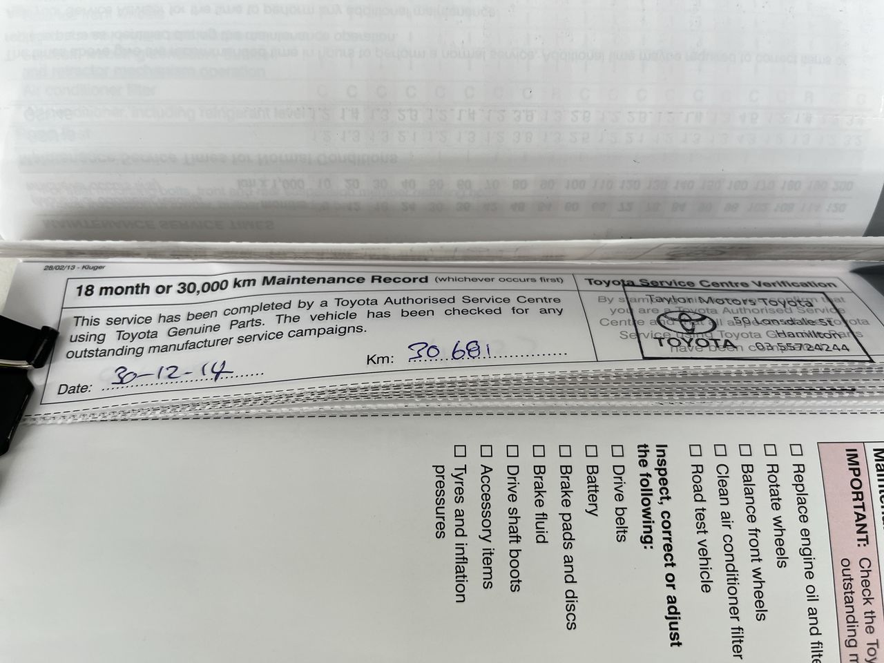 Part of Sale 2013 Toyota Kluger 4X2 KX-R GSU40R Automatic 7 Seats Wagon