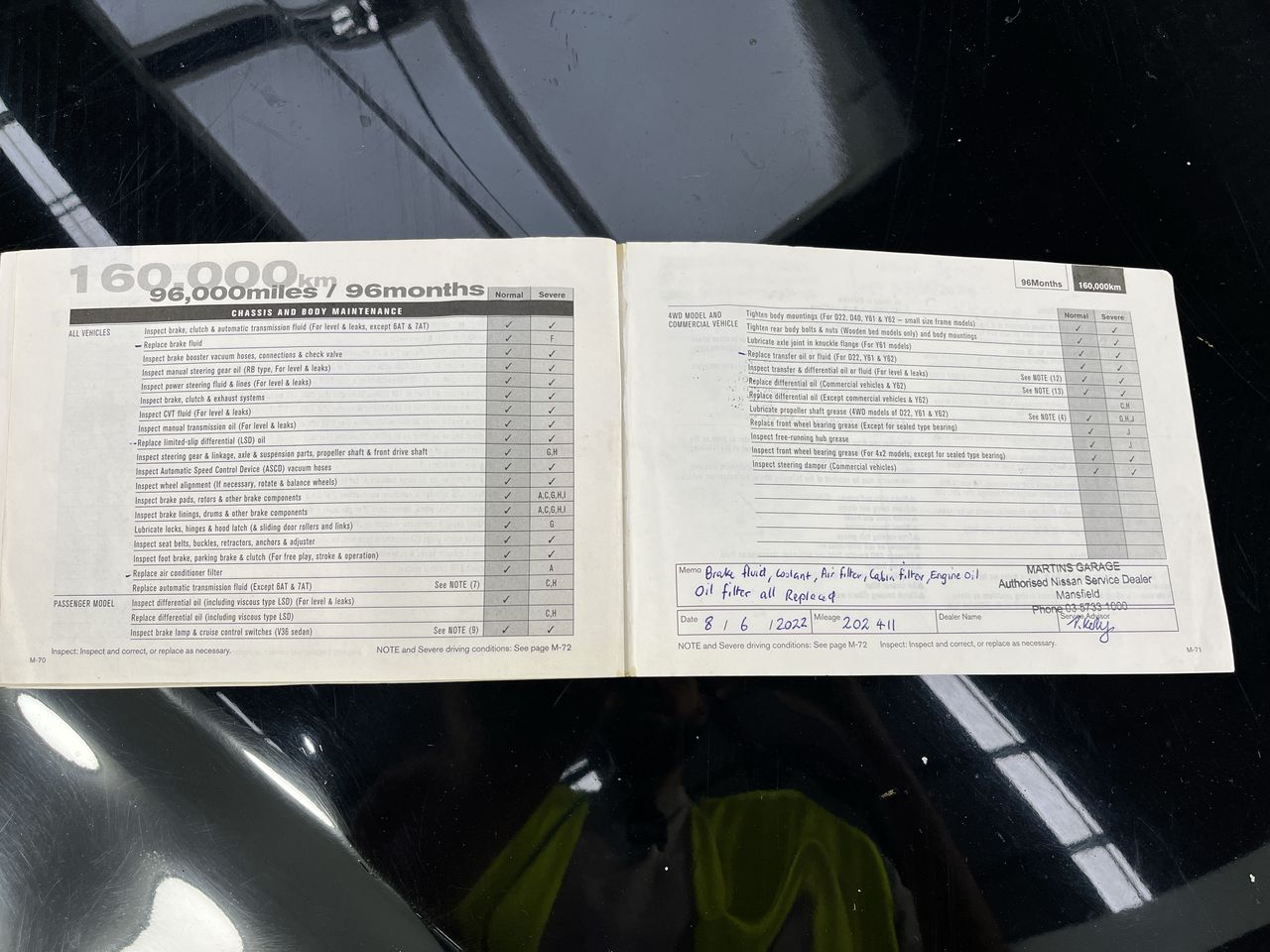• Dents or marks on body consistent with age and kilometres.