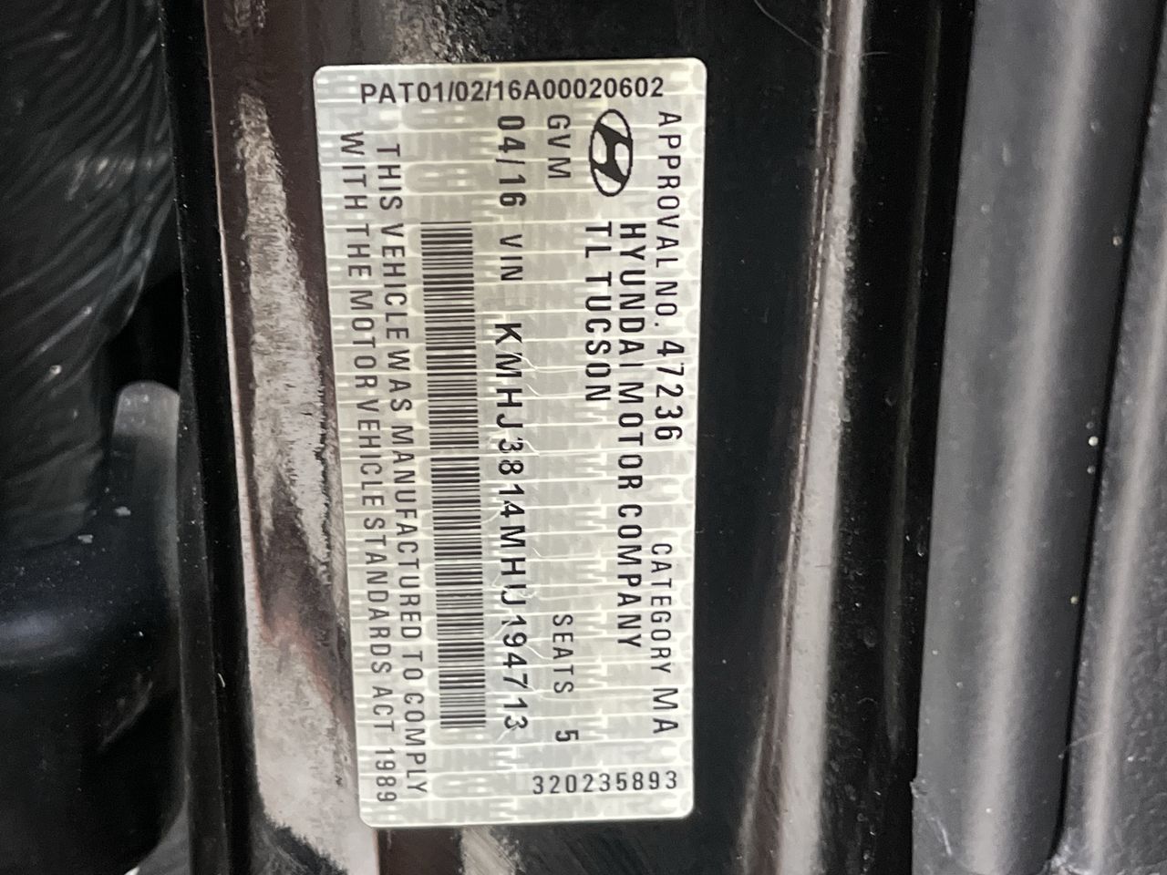 Part of Sale 2016 Hyundai Tucson Active X TL Automatic Wagon