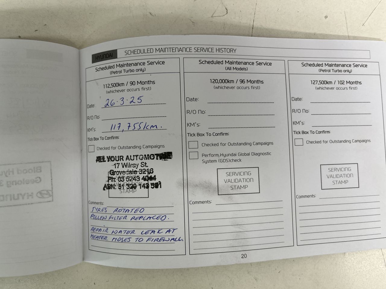 • Dents or marks on body consistent with age and kilometres.