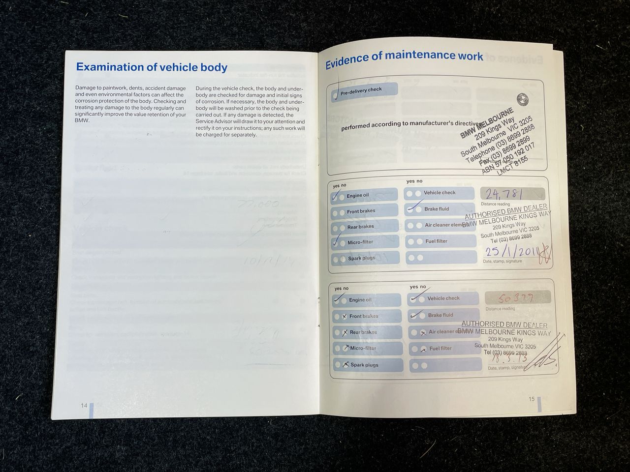 • Dents or marks on body consistent with age and kilometres.