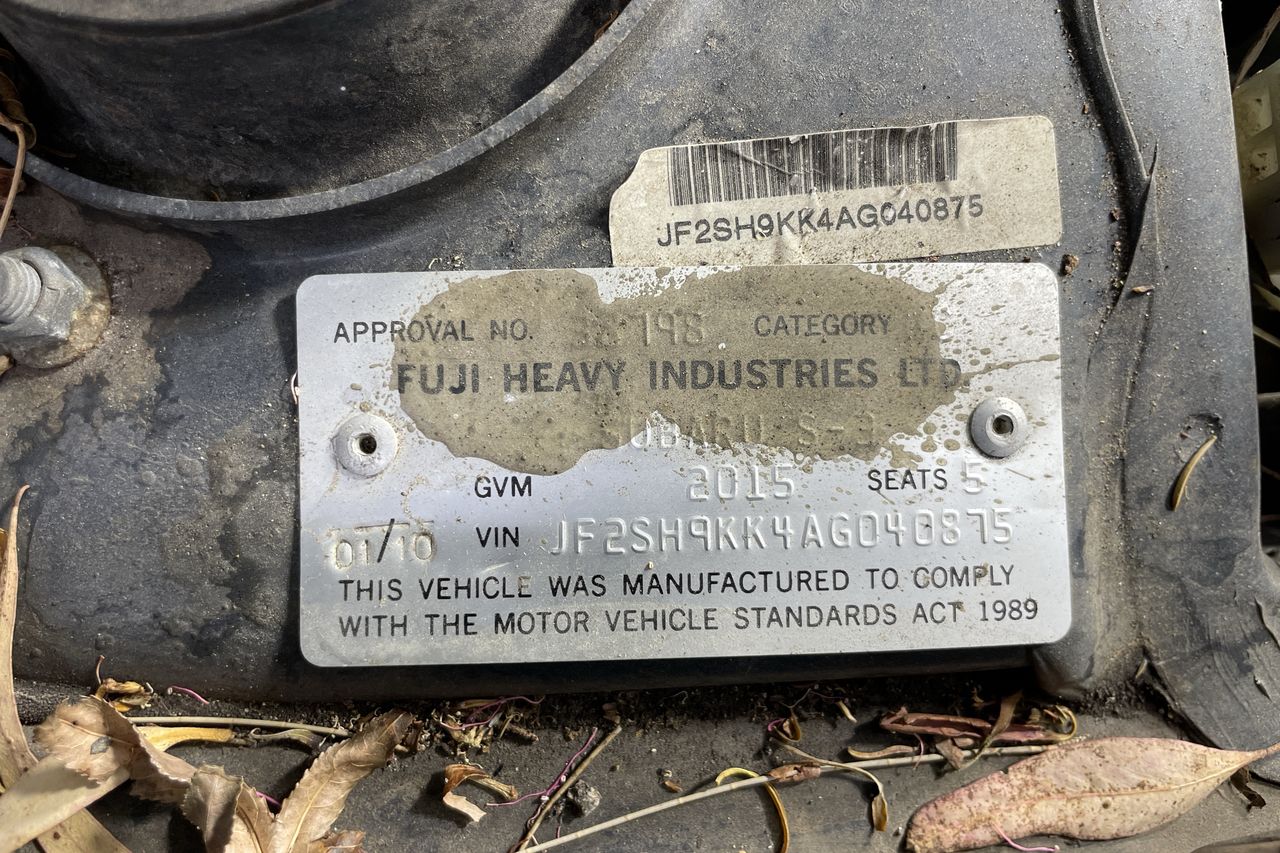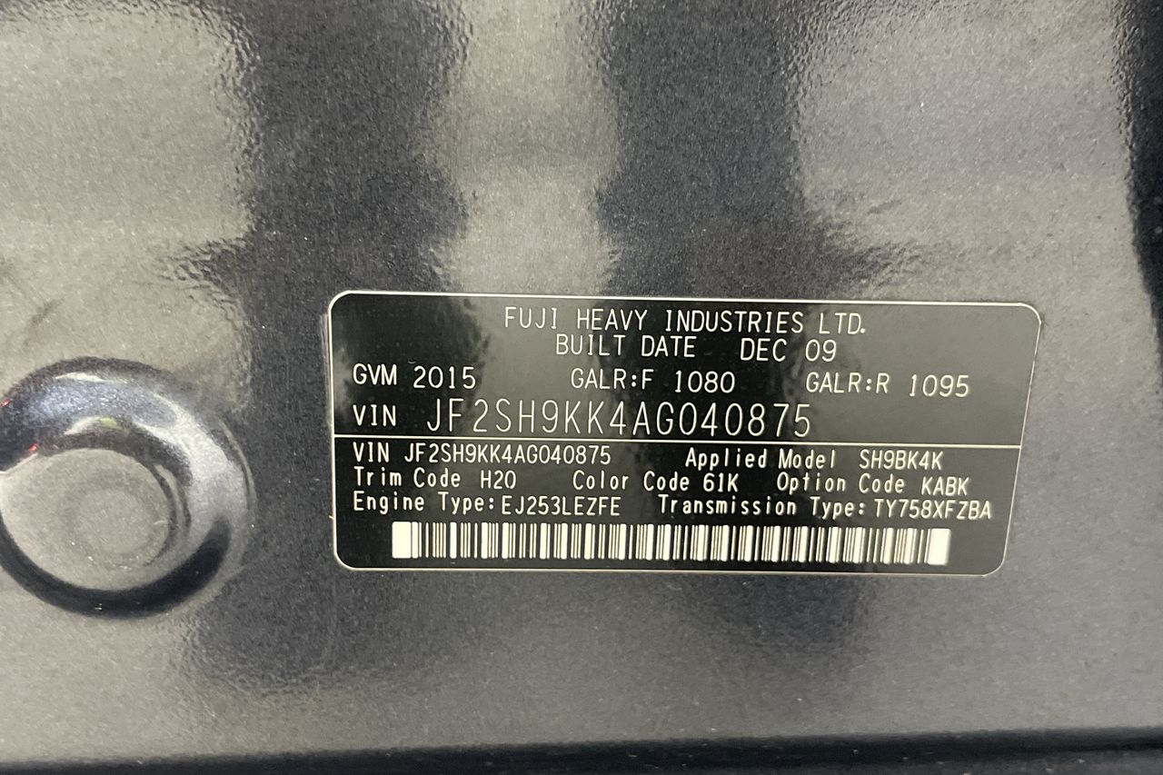• VIN: JF2SH9KK4AG040875