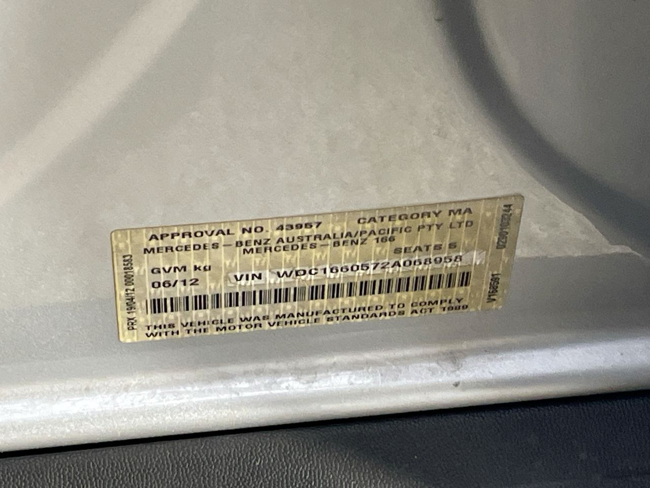 • VIN: WDC1660572A068958