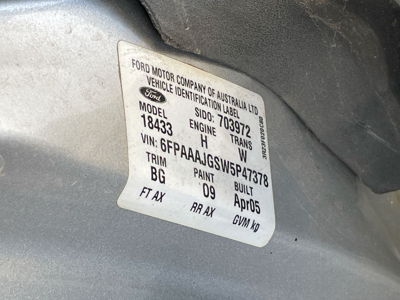 • VIN: 6FPAAAJGSW5P47378