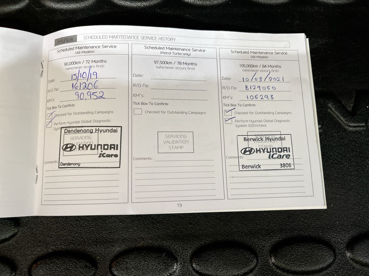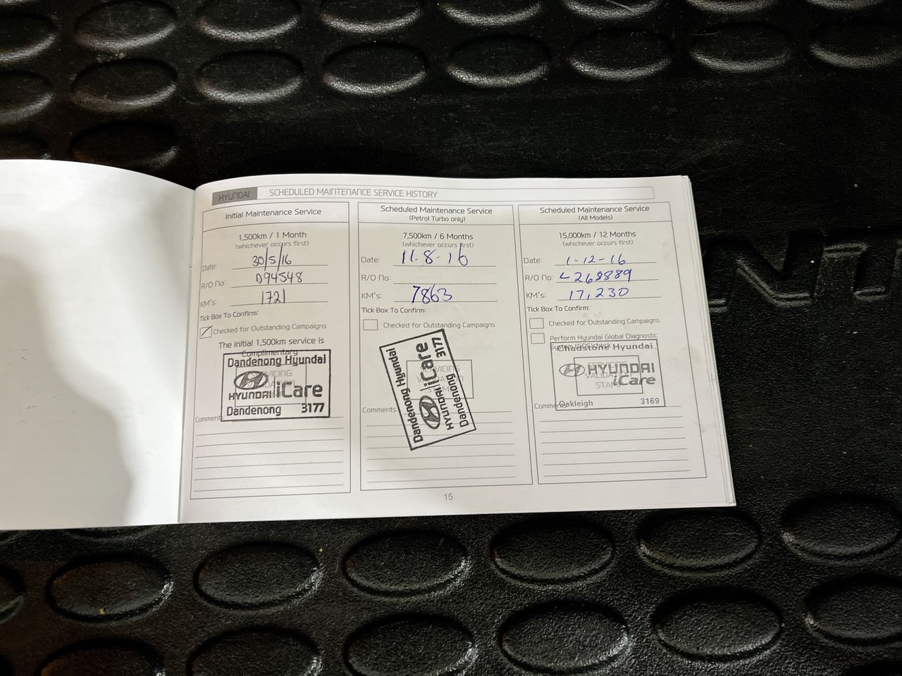 • Dents or marks on body consistent with age and kilometres.
