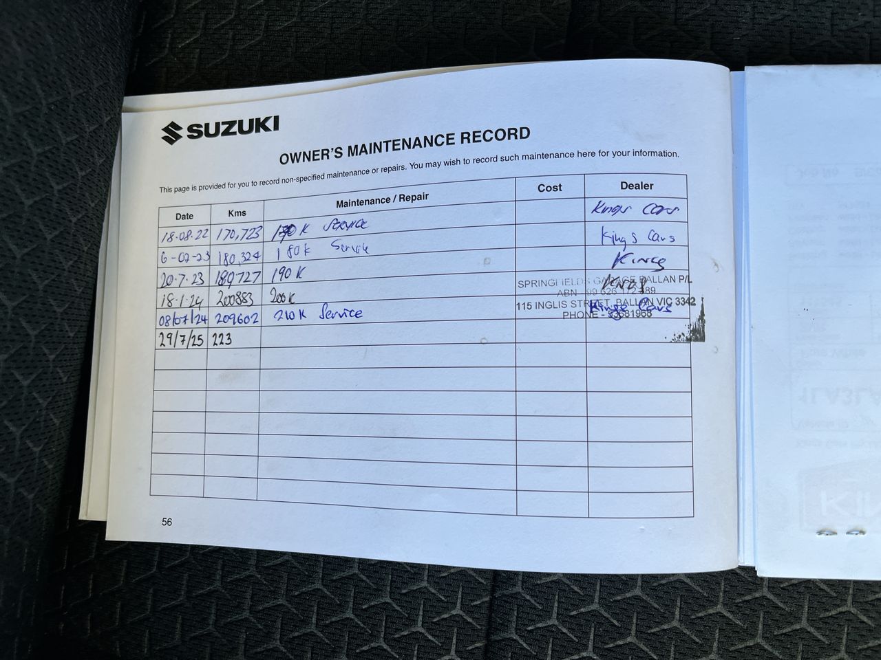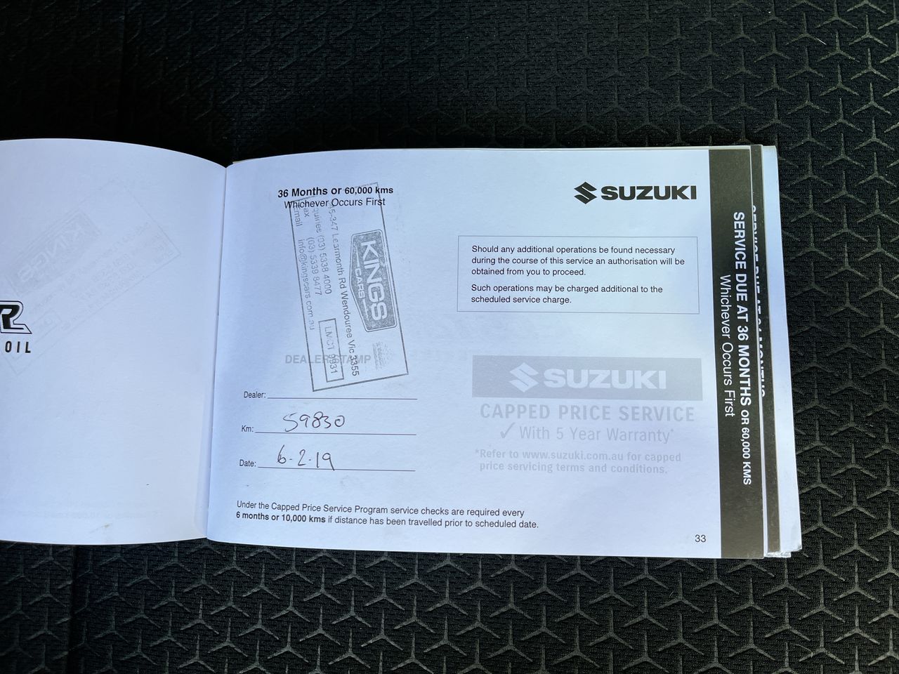 • Dents or marks on body consistent with age and kilometres.