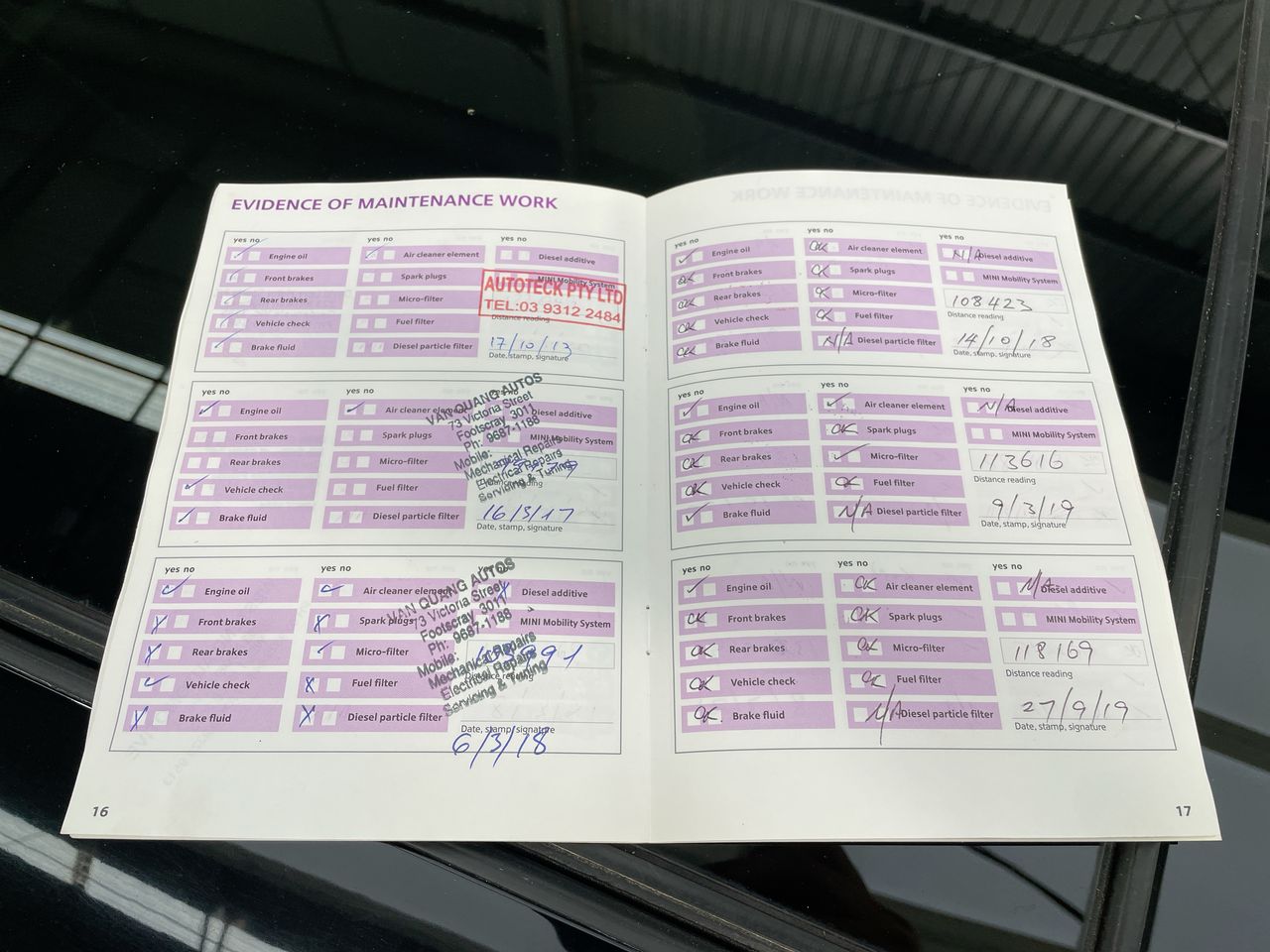 • Dents or marks on body consistent with age and kilometres.