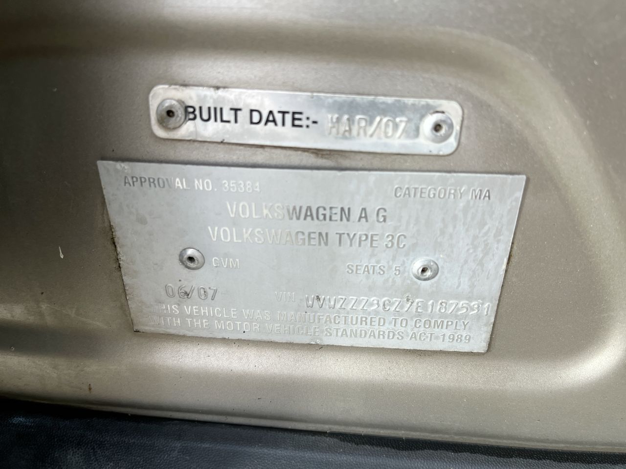 • VIN: WVWZZZ3CZ7E187531