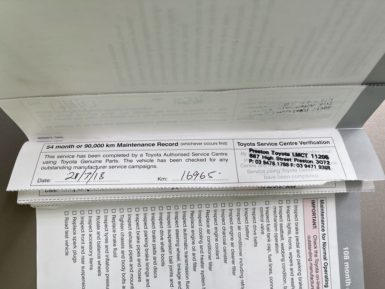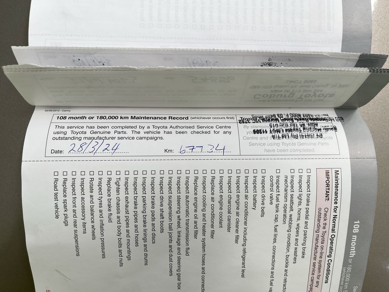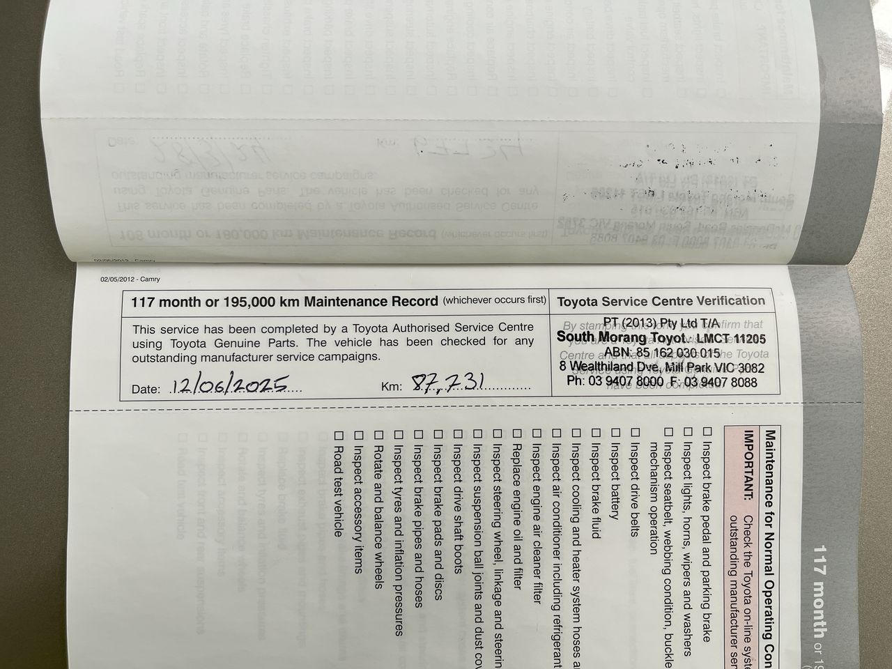 • Dents or marks on body consistent with age and kilometres.