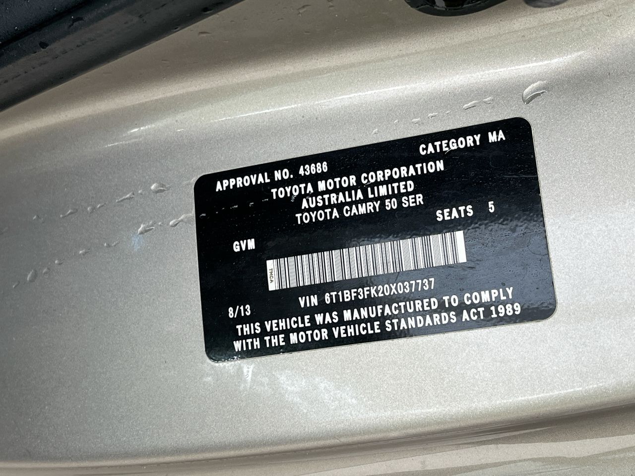 • VIN: 6T1BF3FK20X037737
