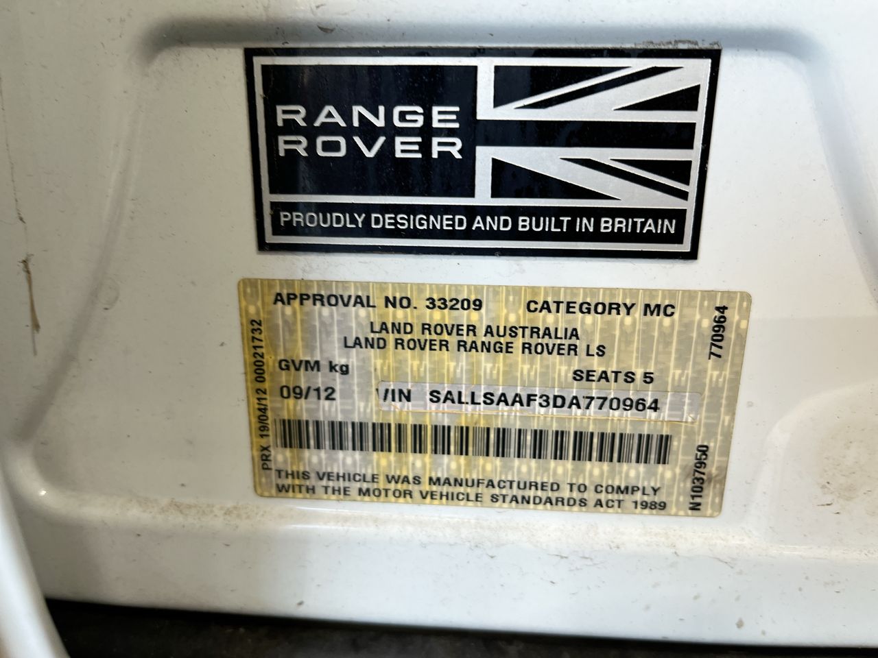 • VIN: SALLSAAF3DA770964