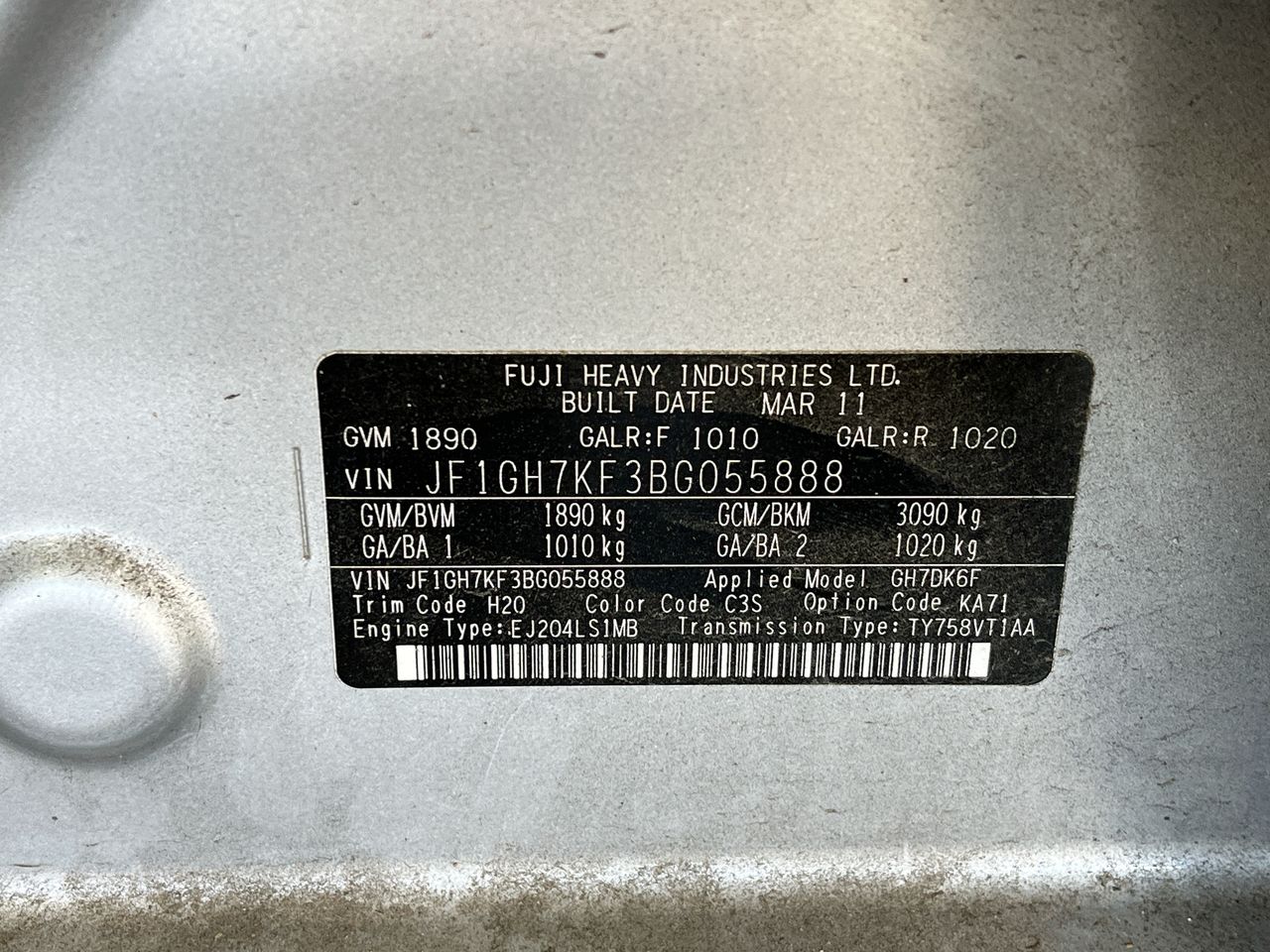 • VIN: JF1GH7KF3BG055888