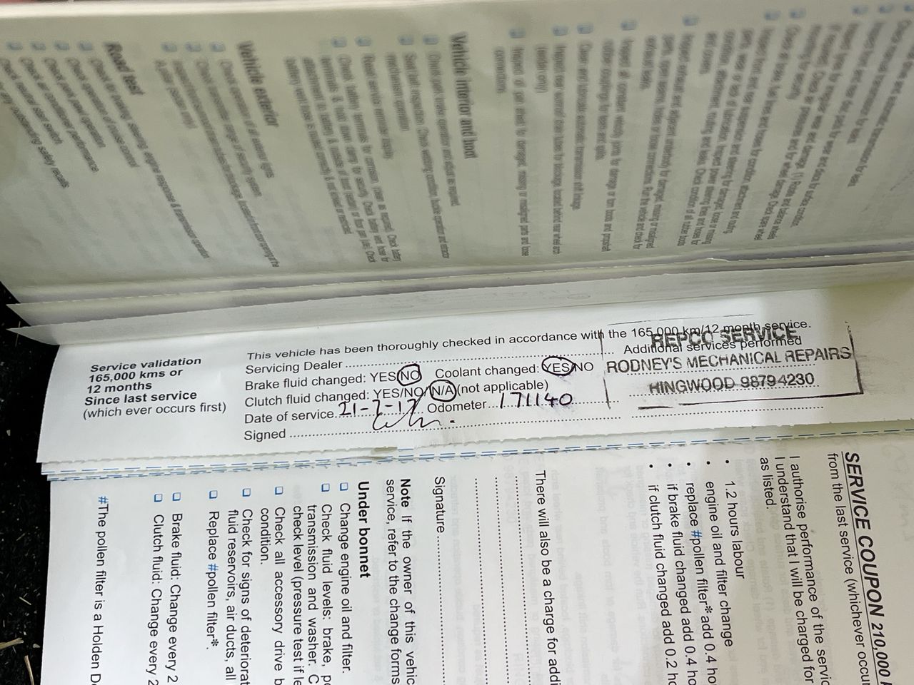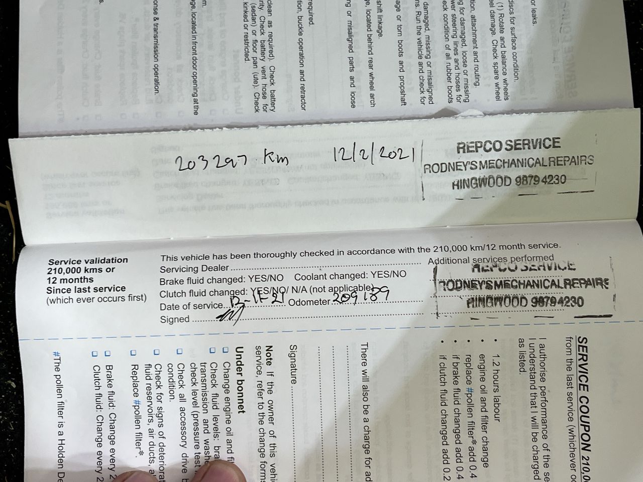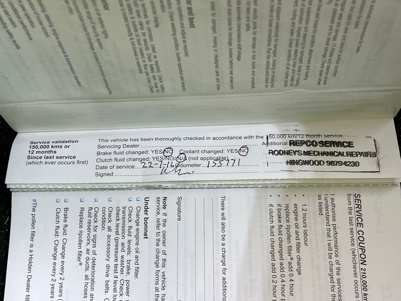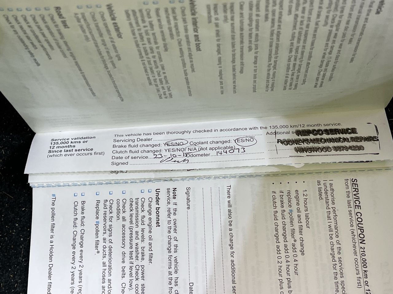 • Dents or marks on body consistent with age and kilometres.