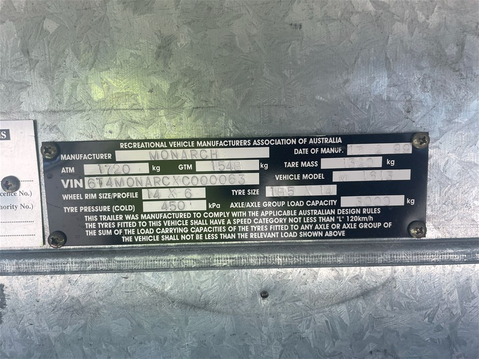Part of Sale 1999 Monarch Crusader Caravan