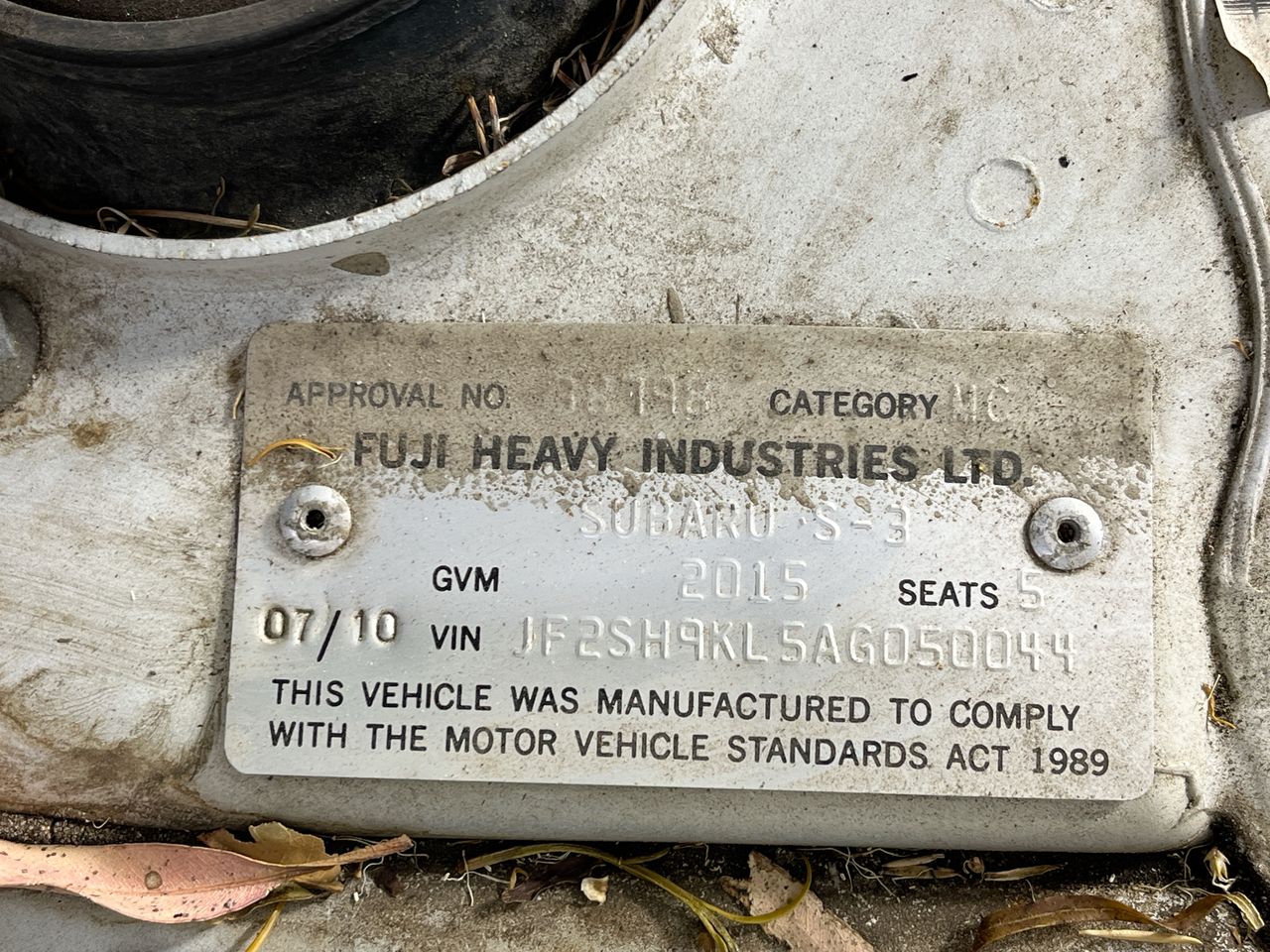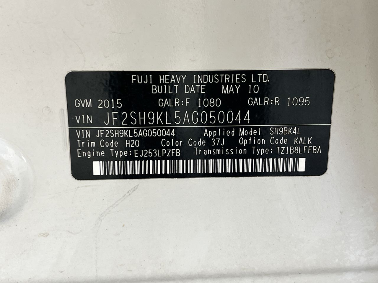 • VIN: JF2SH9KL5AG050044