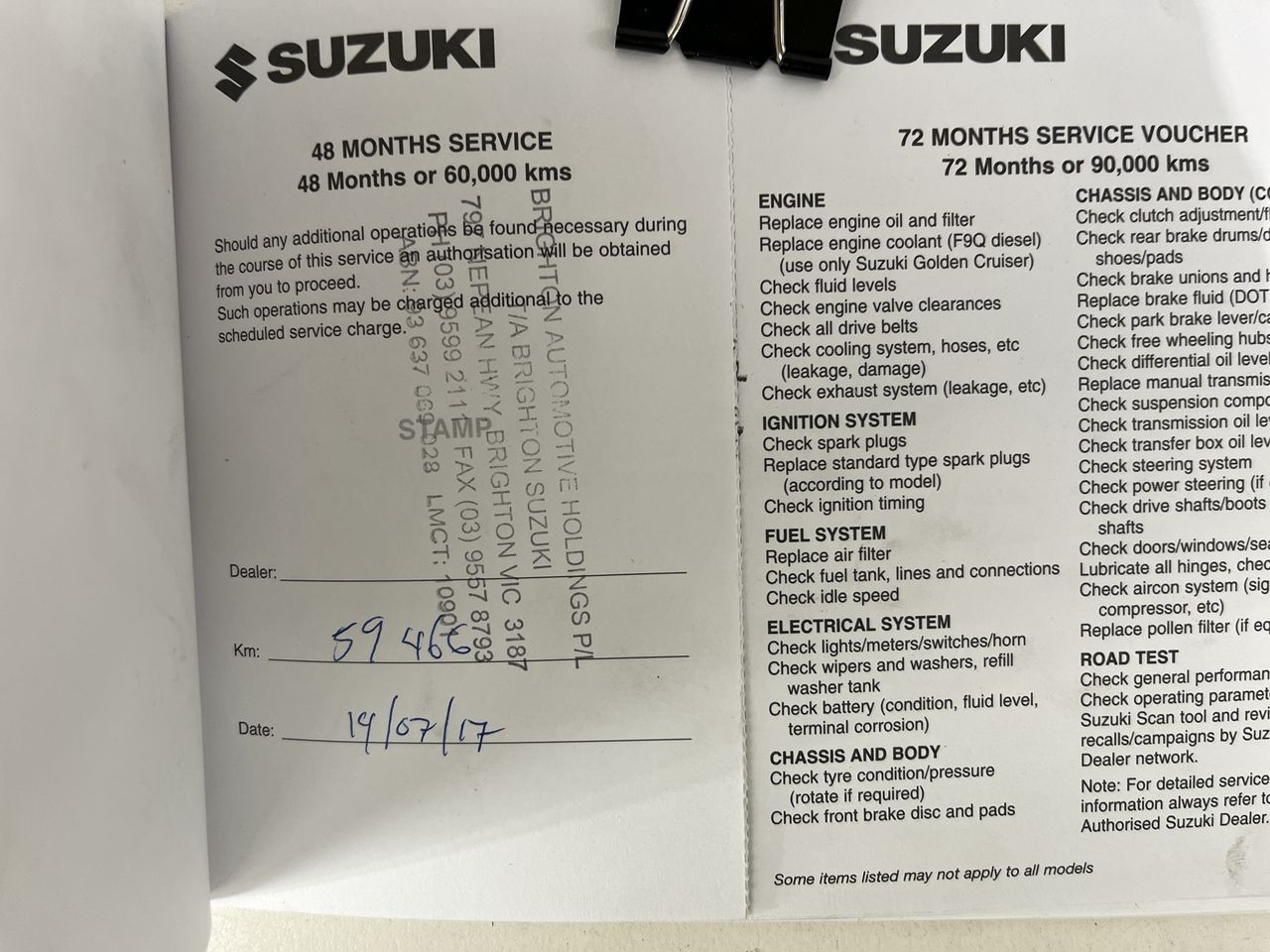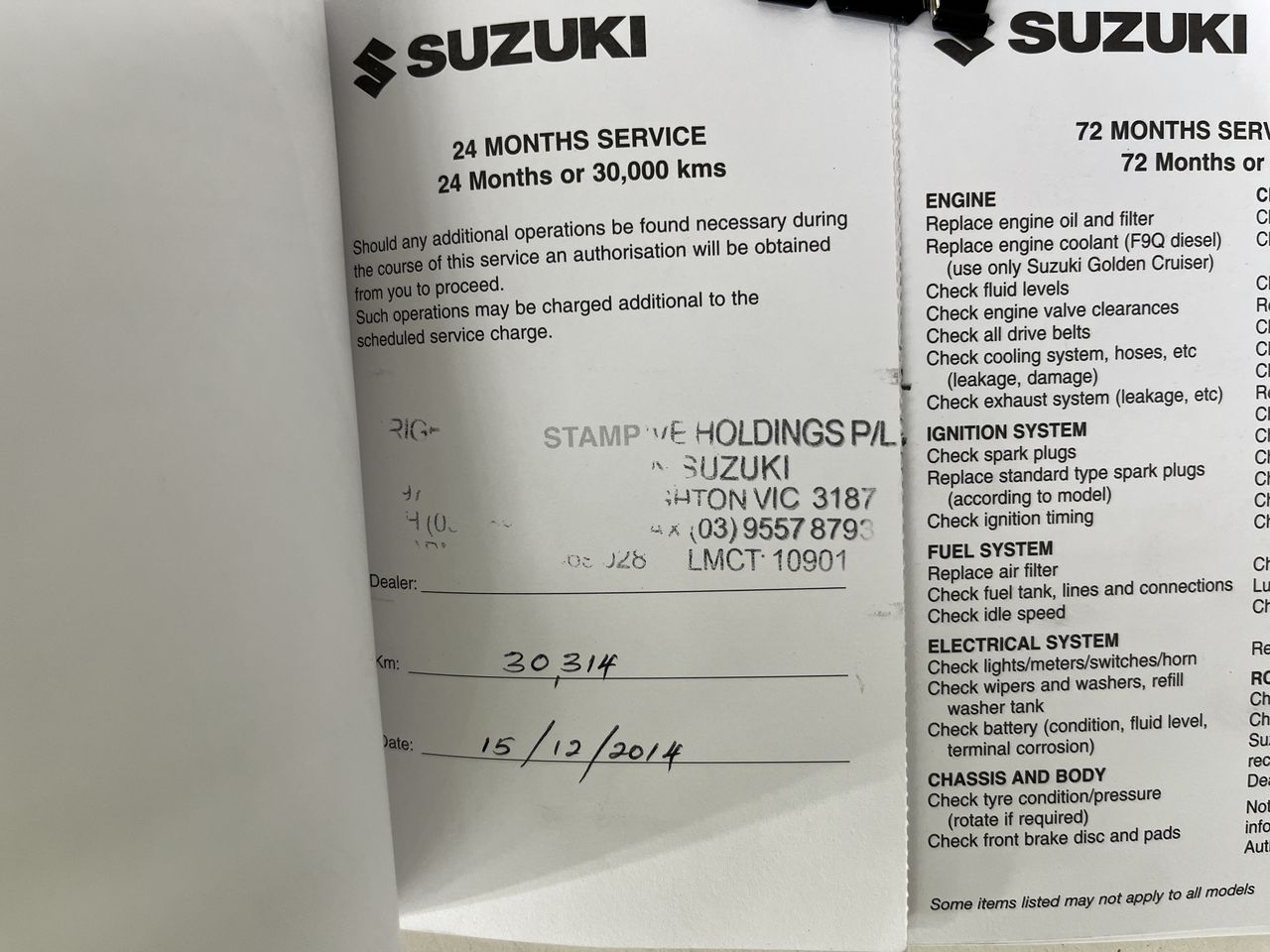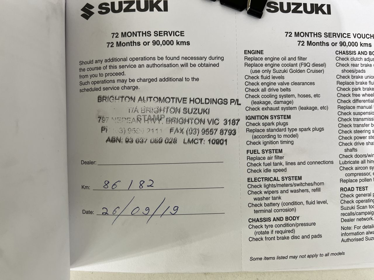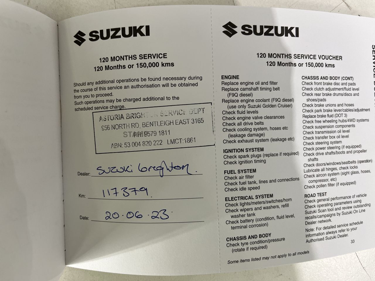 • Dents or marks on body consistent with age and kilometres.