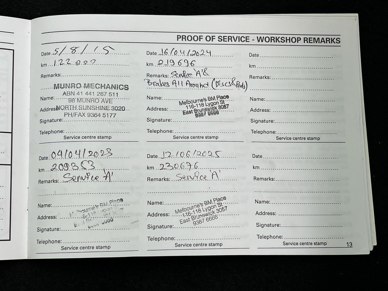 • Dents or marks on body consistent with age and kilometres.