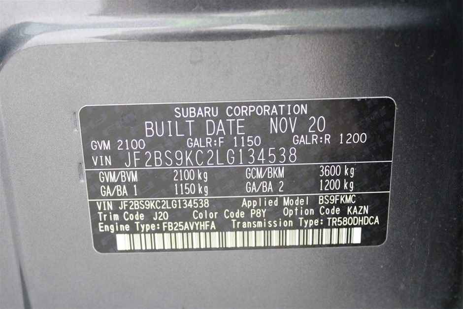 • VIN: JF2BS9KC2LG134538