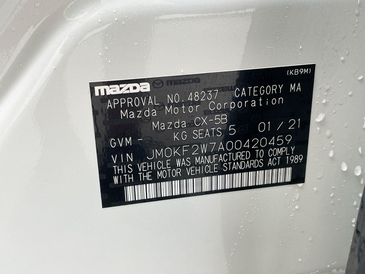 • VIN: JM0KF2W7A00420459