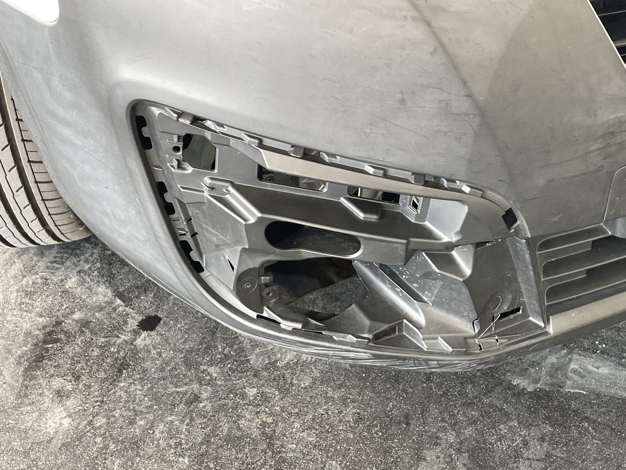 • Front bumper cracked, Requires attention.