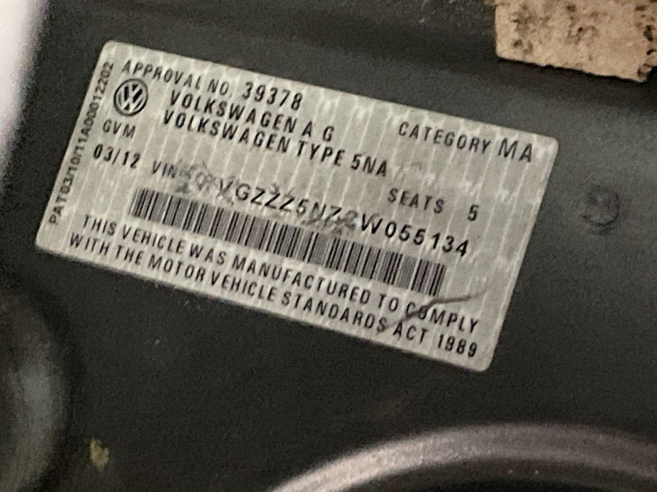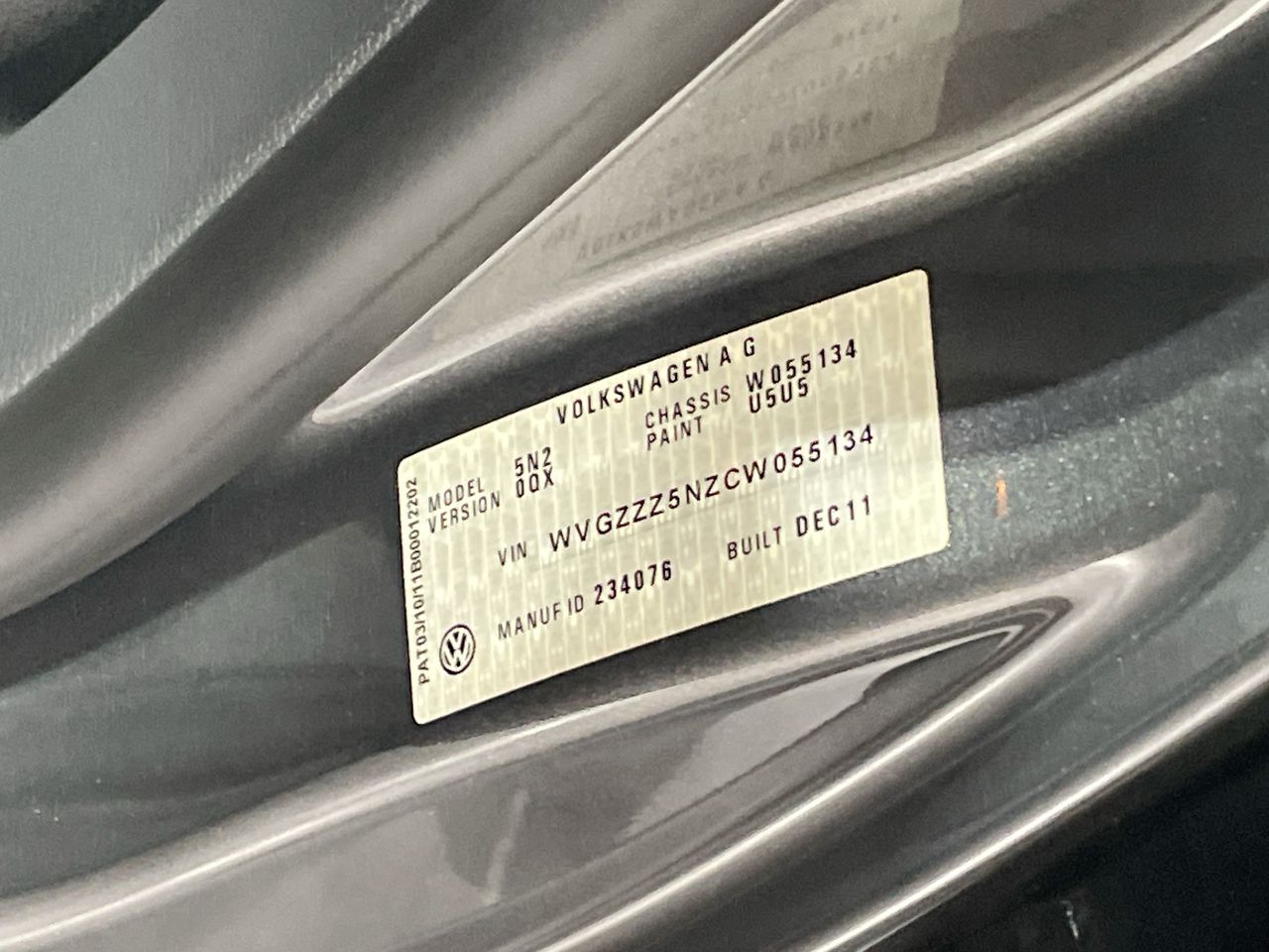 • VIN: WVGZZZ5NZCW055134
