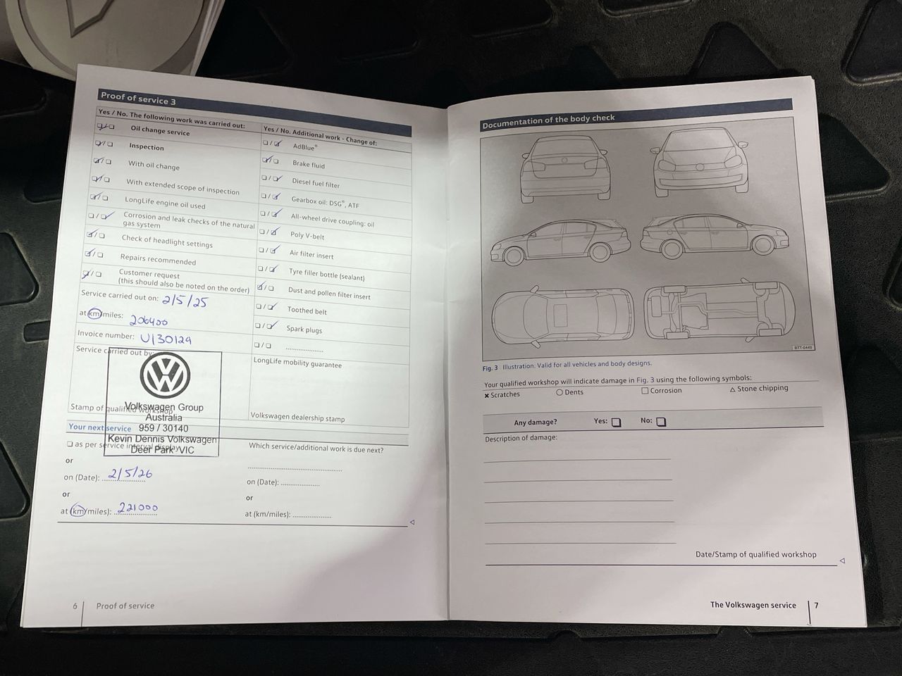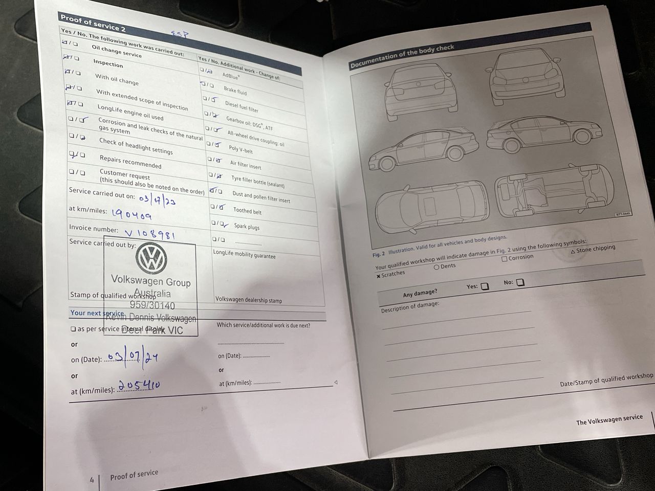 • Dents or marks on body consistent with age and kilometres.