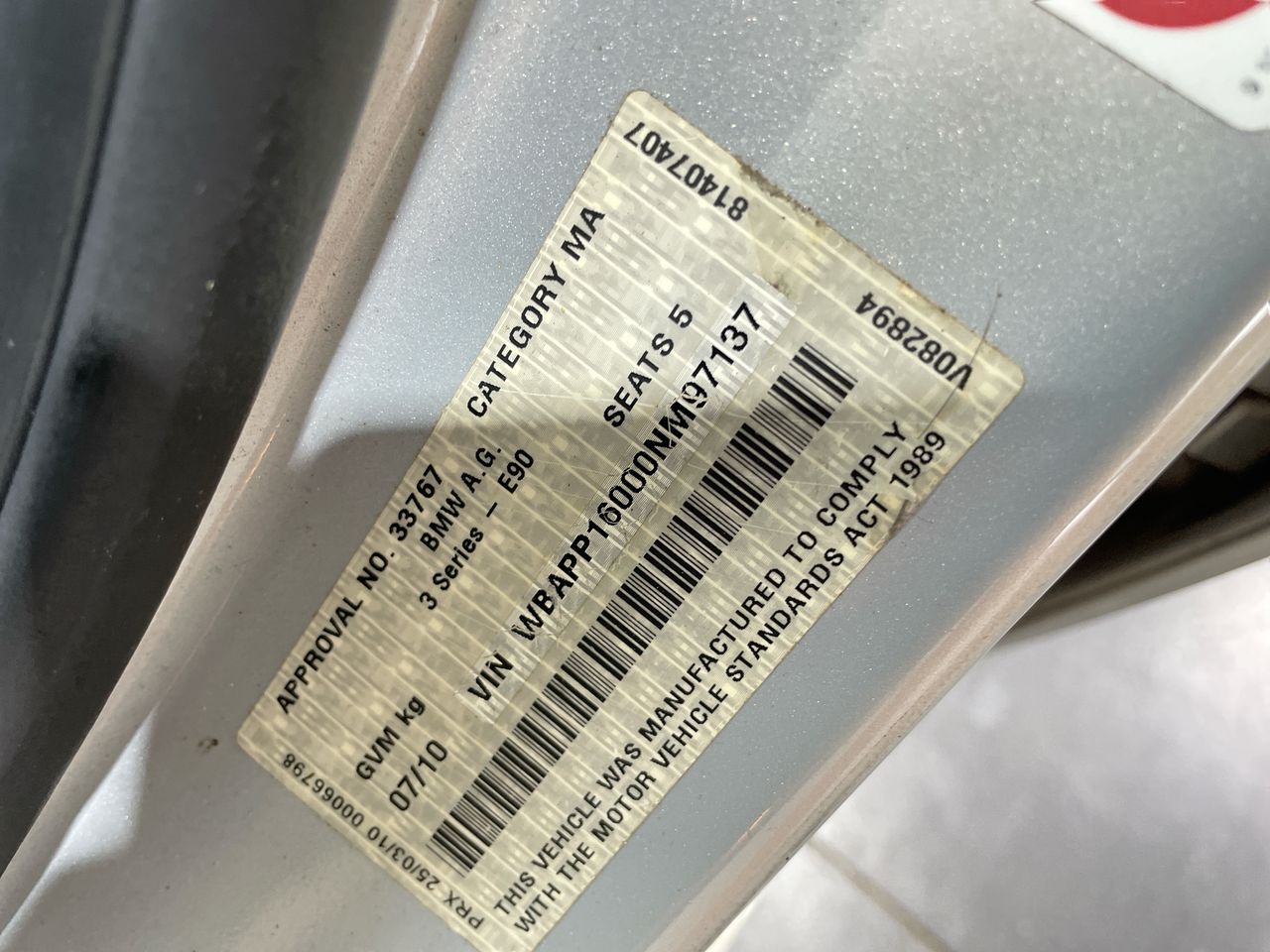 • VIN: WBAPP16000NM97137
