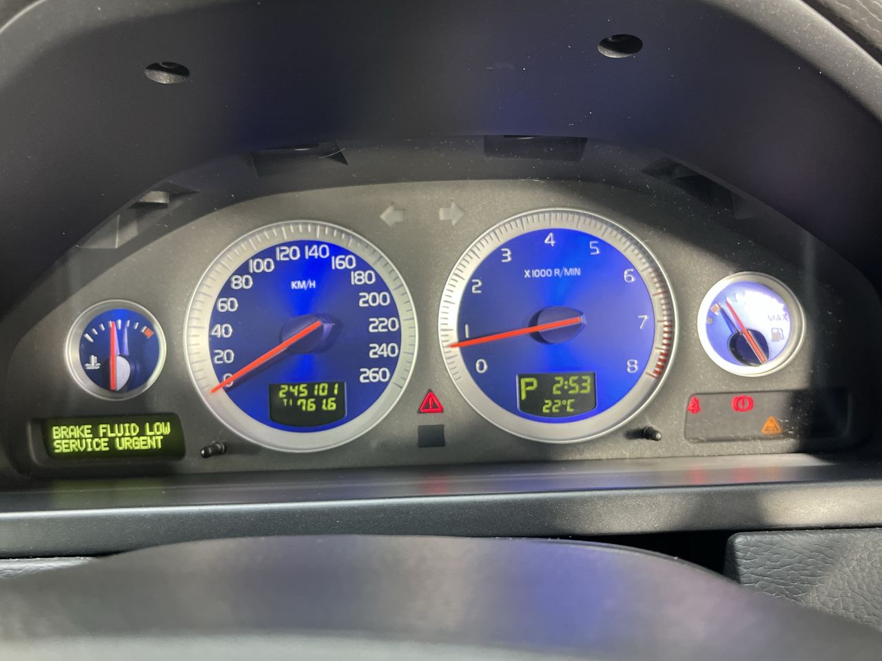 • Interior: front aircon blower worn, Brake fluid low warning light on dash, Exterior: LHR guard shredded