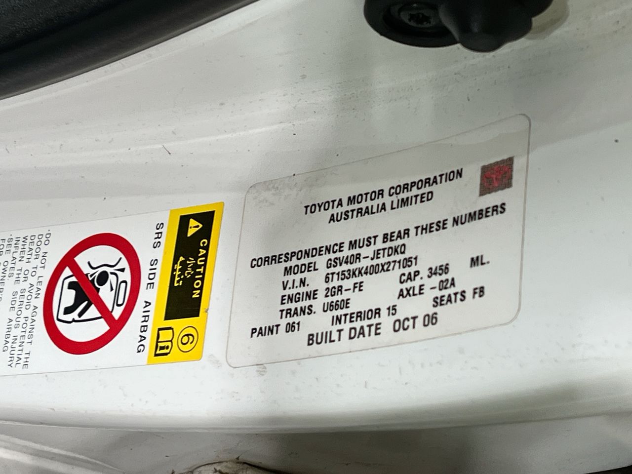 2006 Toyota Aurion AT-X GSV40R Automatic Sedan