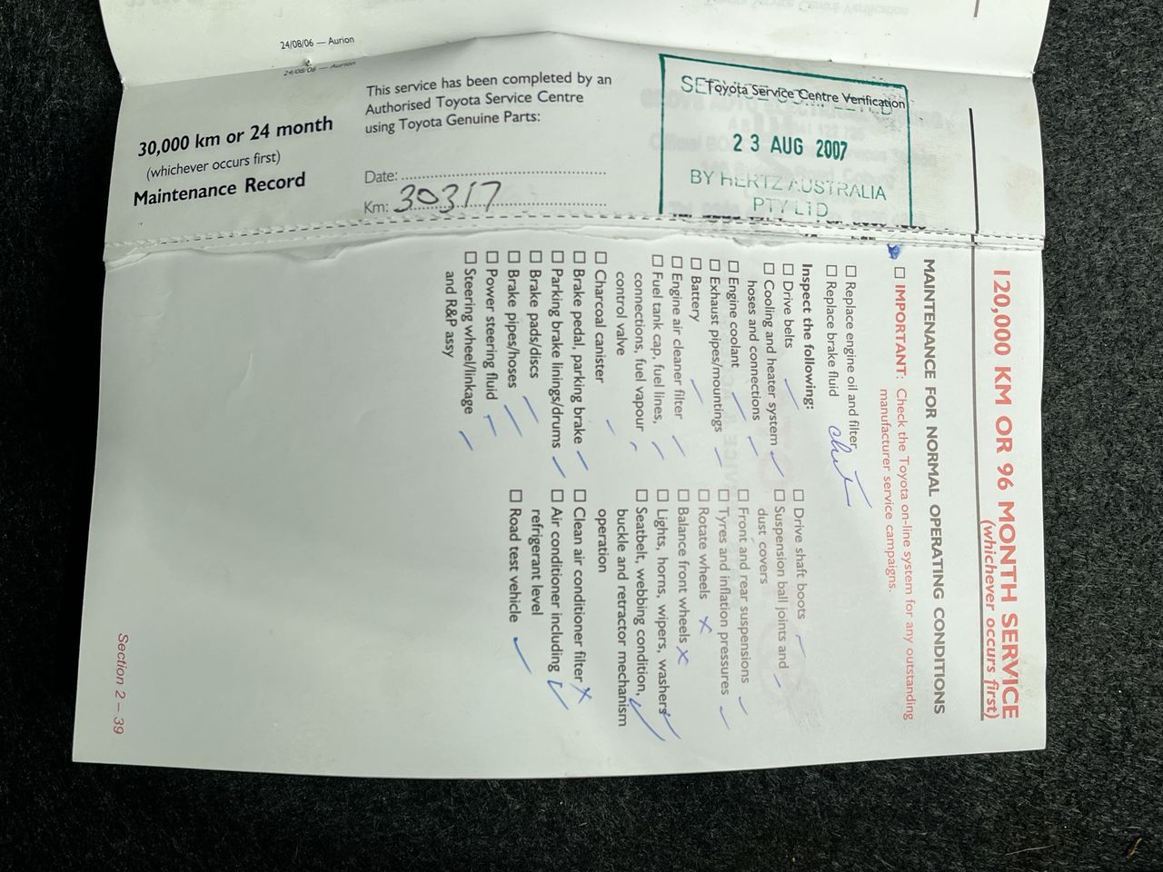 • Dents or marks on body consistent with age and kilometres.