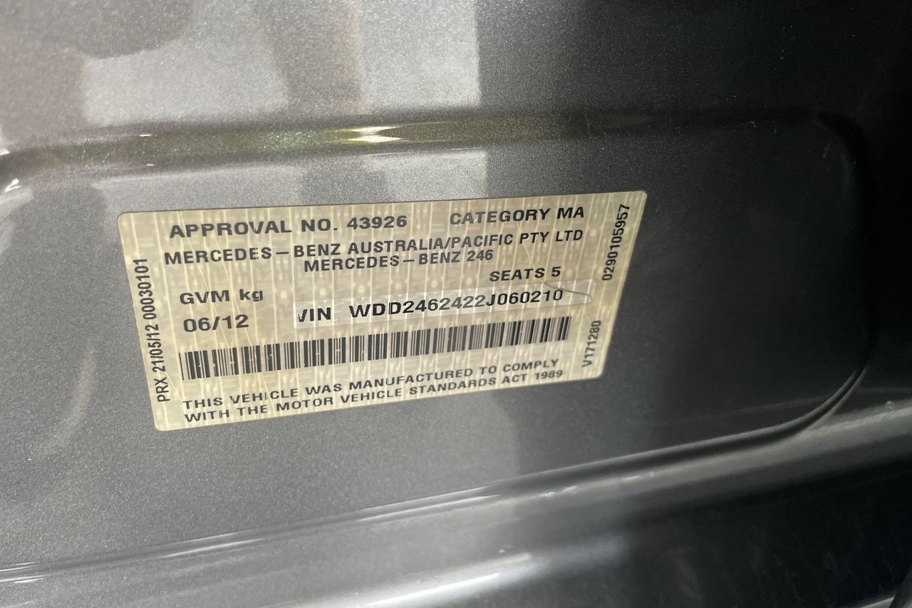 2012 Mercedes Benz B-Class B180 BE W246 Automatic Hatchback