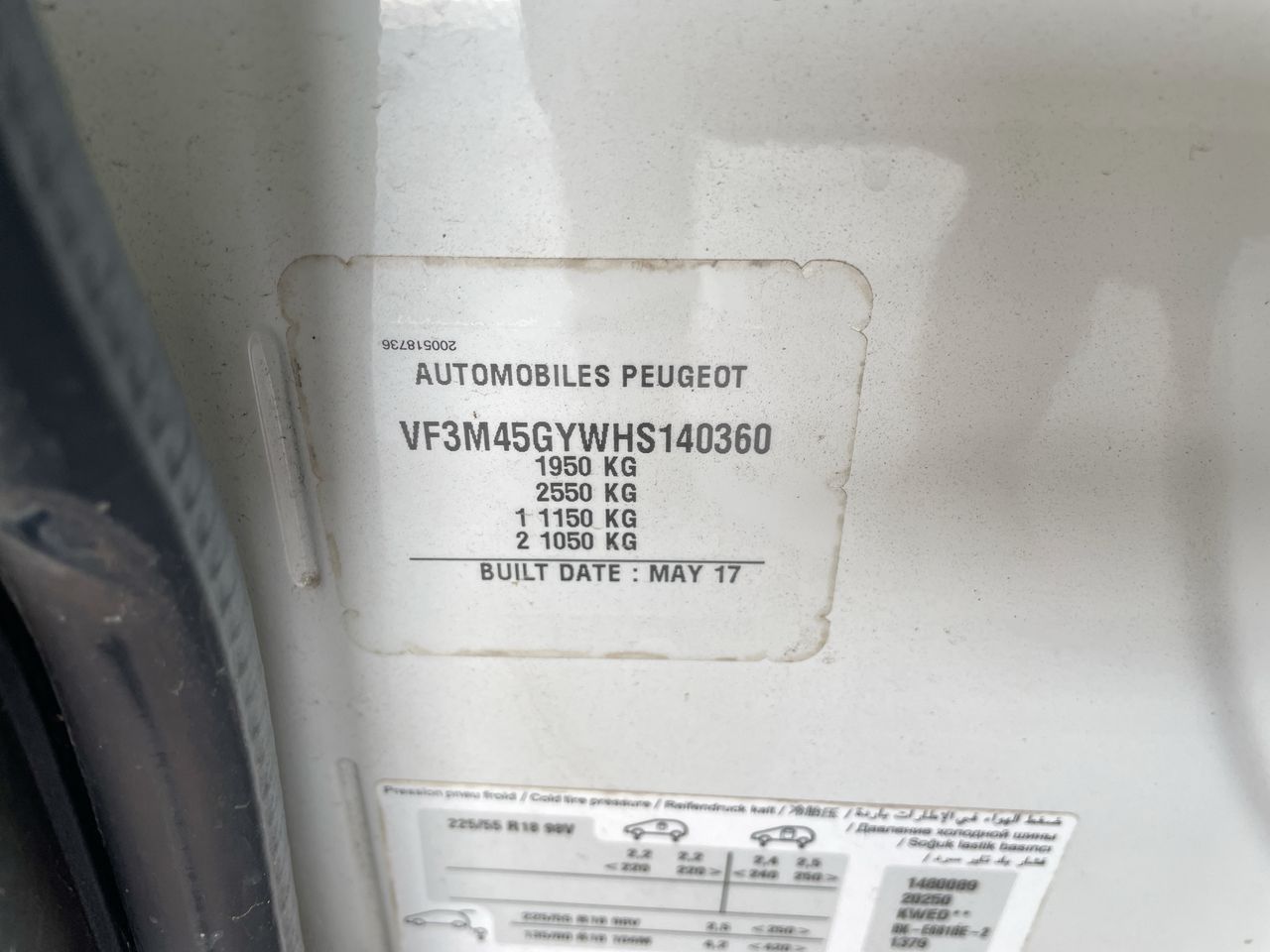• VIN: VF3M45GYWHS140360
