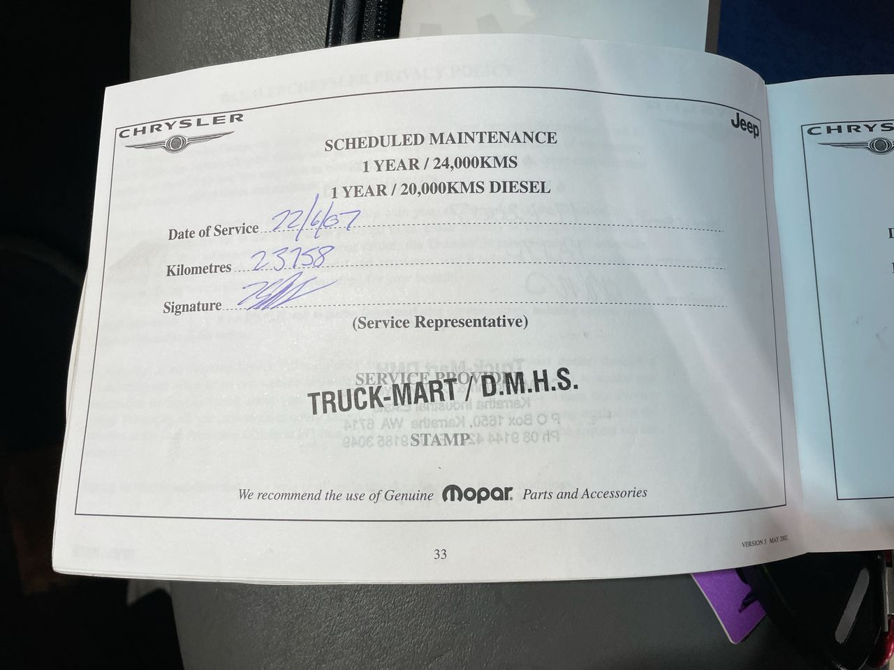 • Dents or marks on body consistent with age and kilometres.