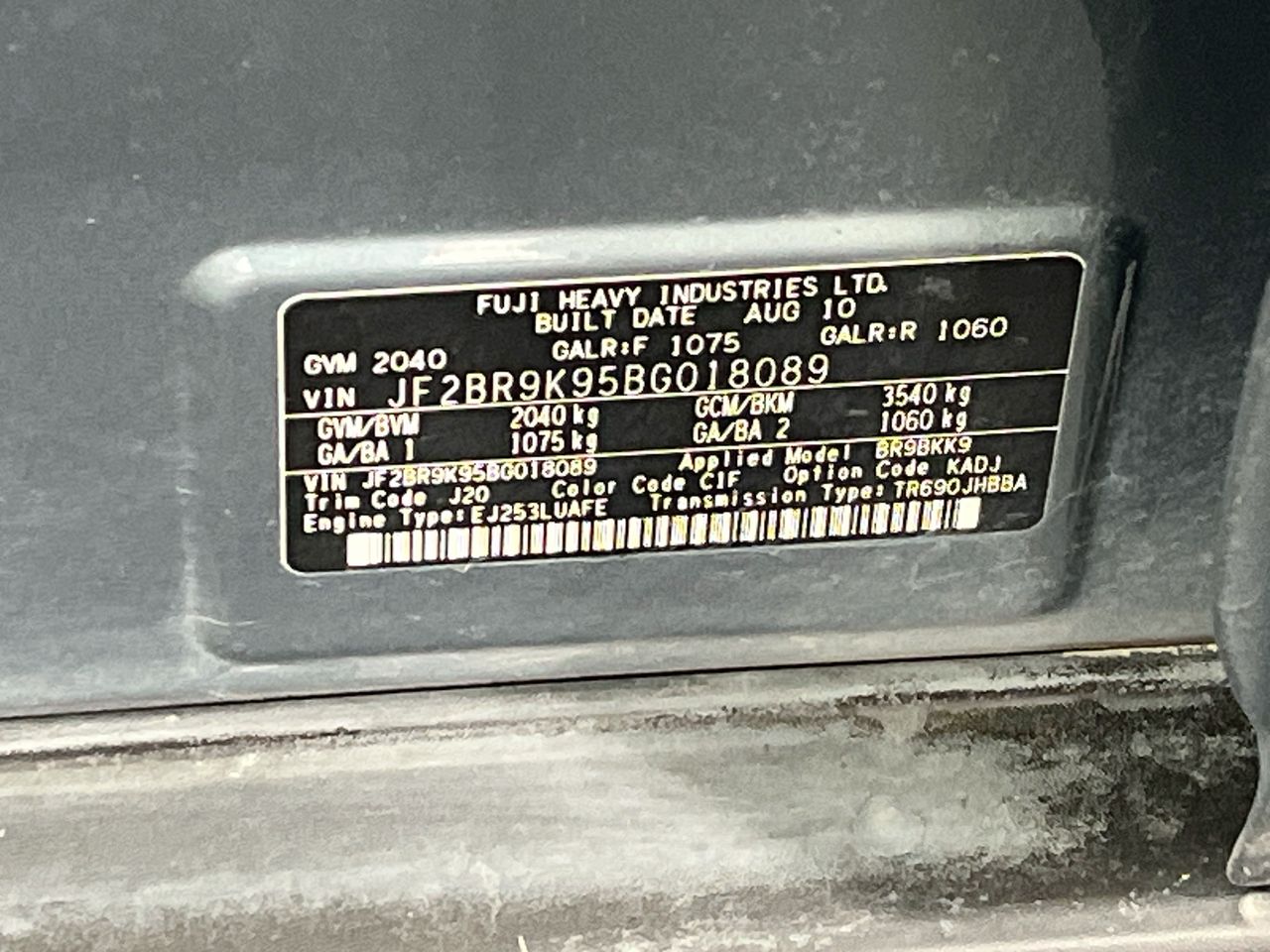 • VIN: JF2BR9K95BG018089