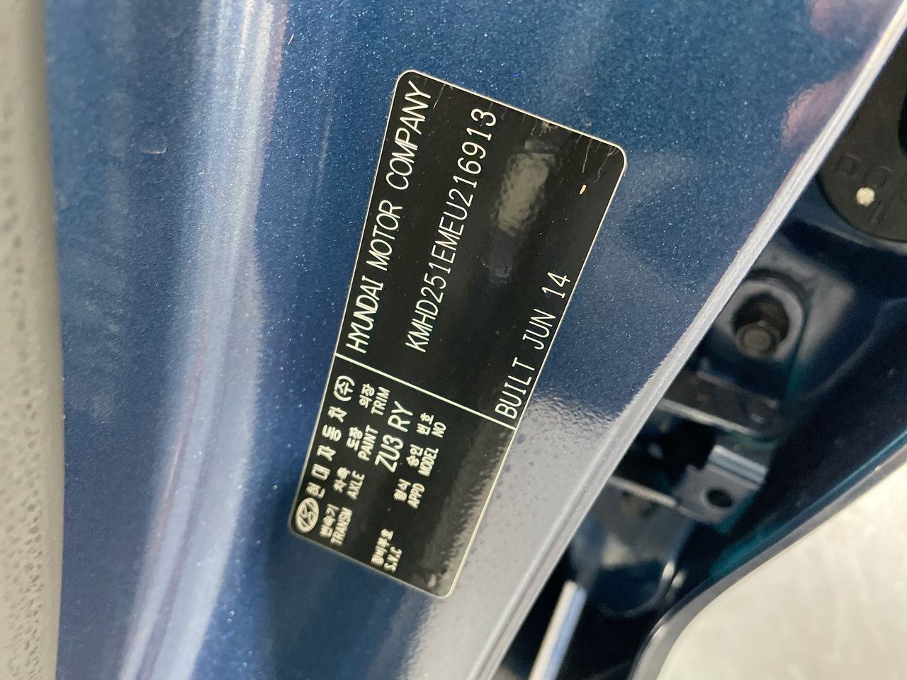• VIN: KMHD251EMEU216913