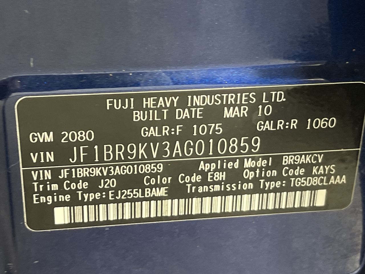 (SN:JF1BR9KV3AG010859) (130800-687)