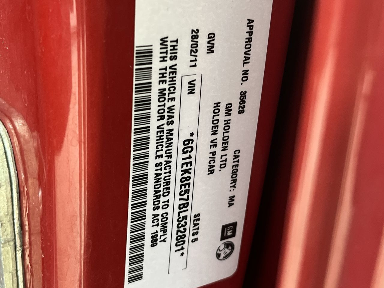 • VIN: 6G1EK8E57BL532801